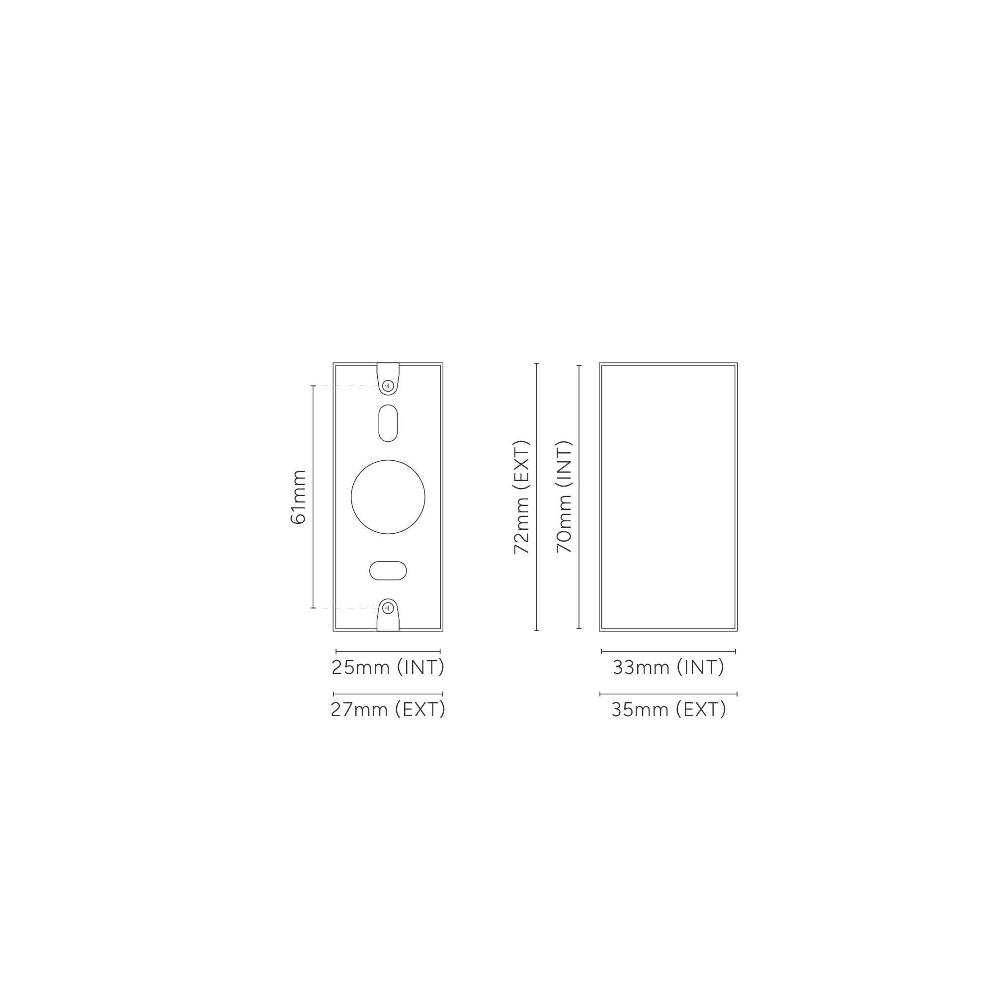 All Corston switches and sockets require a back box with a minimum depth of 35-47mm. It's the only way you'll achieve a flush finish. Our 6G and 8G switches must be used with a Corston double metal back box. because of the bespoke size.