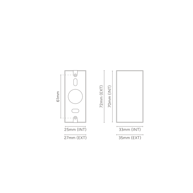 All our switches and sockets must be fitted with back boxes that are at least 35mm in depth. Our rocker switches and our 6G and 8G light switches must be fitted with our bespoke 47mm back boxes to ensure the flush fit of our plates.