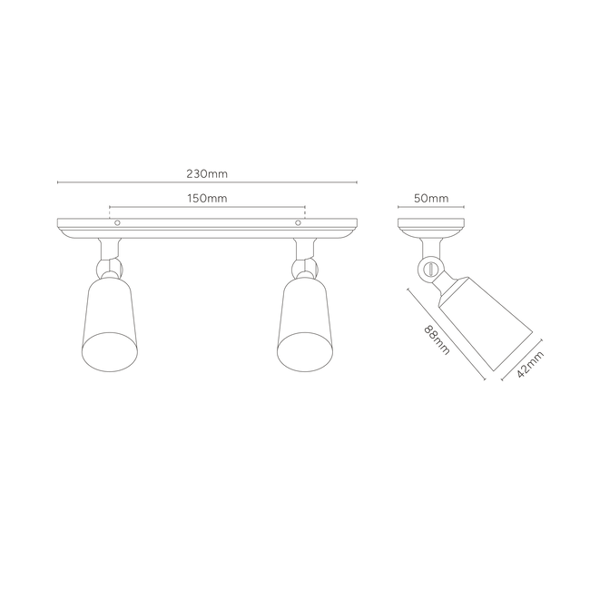 Our Baylis double spotlight has a refined base and discreet screws. It’ll sit neatly on any ceiling or wall.