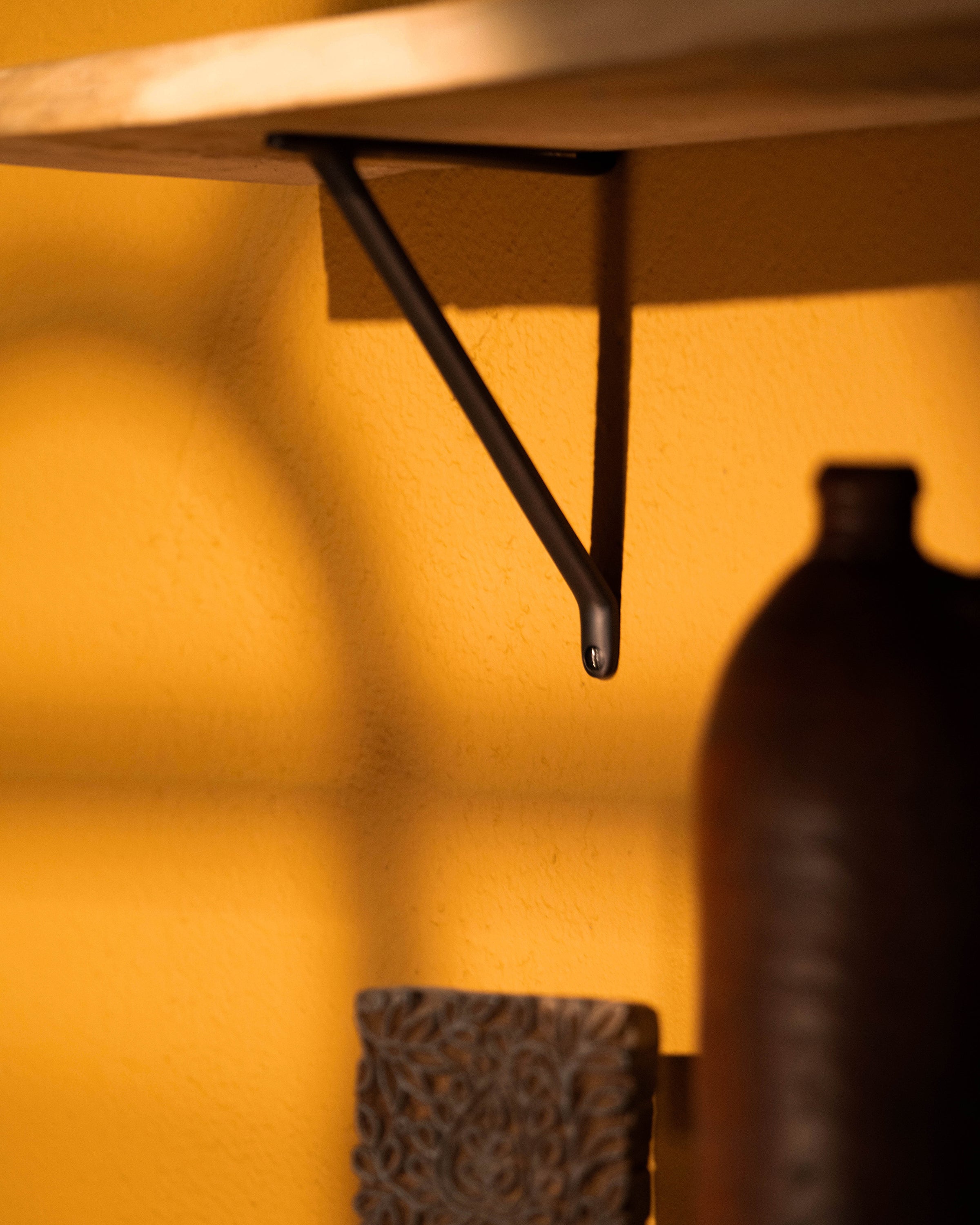 Our Brixton shelf bracket is cast from a single piece of sturdy solid brass. It’ll sit flush against your wall and comfortably hold 40kg.