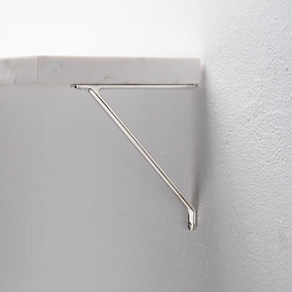 Our Brixton shelf bracket is cast from a single piece of sturdy solid brass. It’ll sit flush against your wall and comfortably hold 40kg.