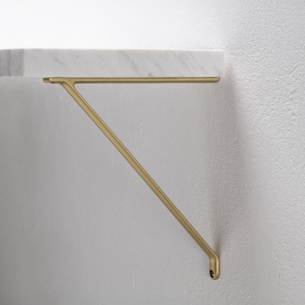 Our Brixton shelf bracket is cast from a single piece of sturdy solid brass. It’ll sit flush against your wall and comfortably hold 40kg.