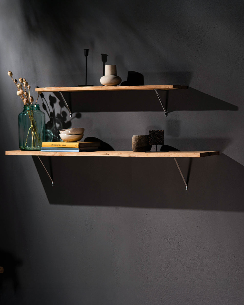 Our Brixton shelf bracket is cast from a single piece of sturdy solid brass. It’ll sit flush against your wall and comfortably hold 40kg.
