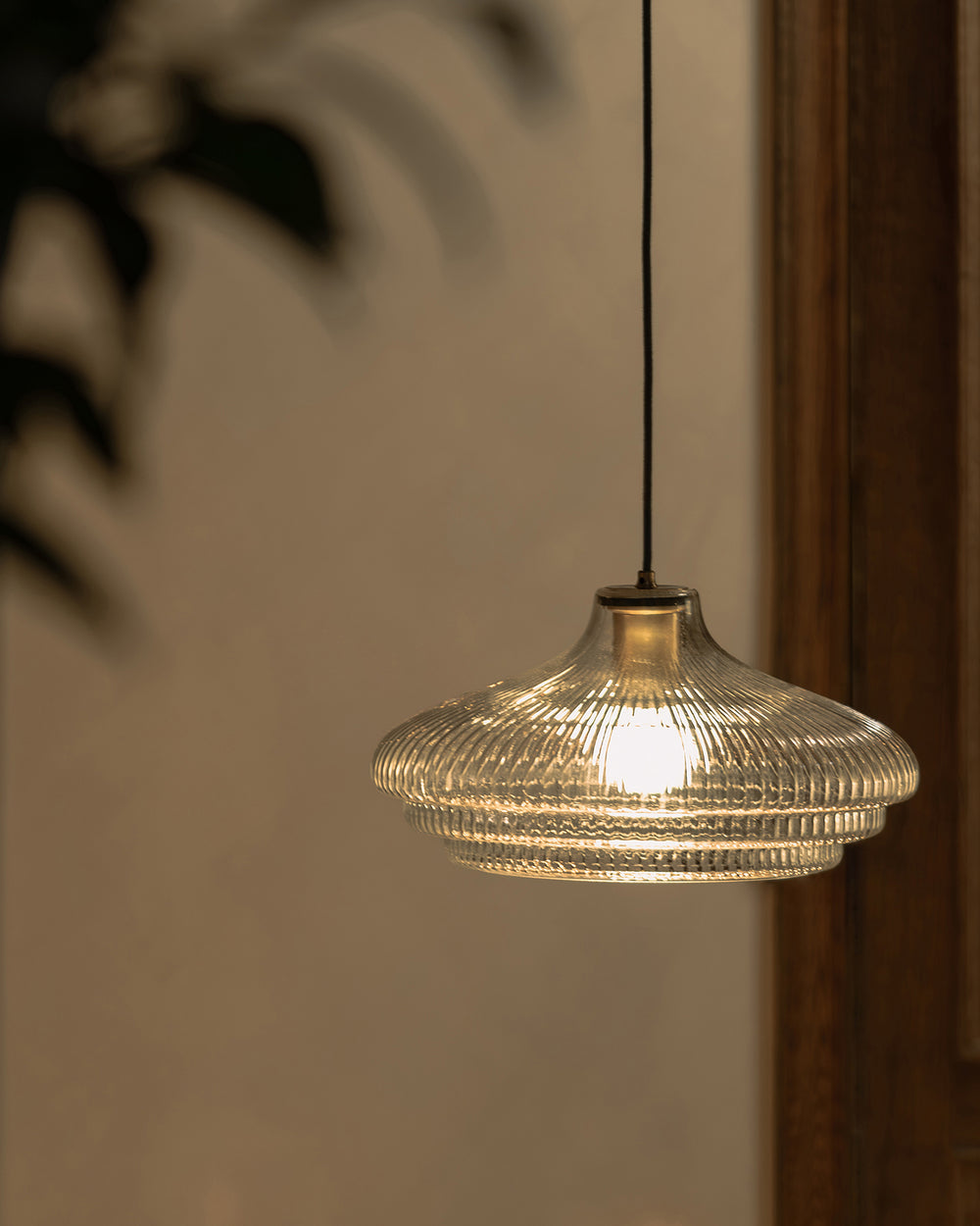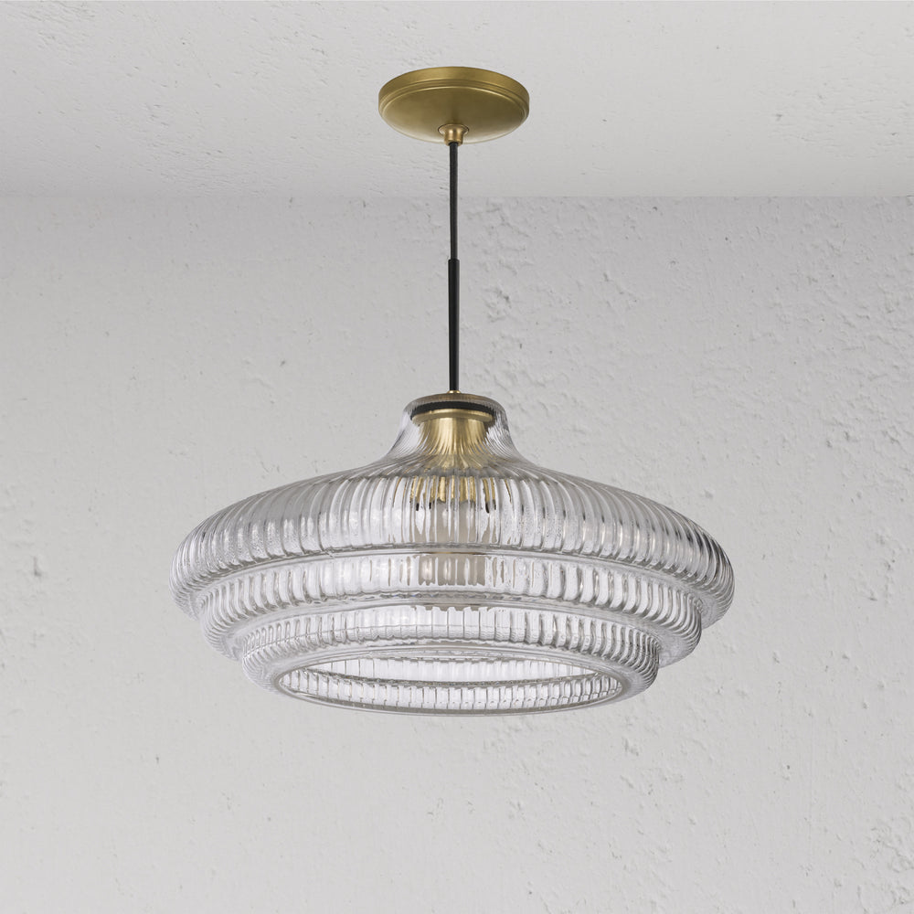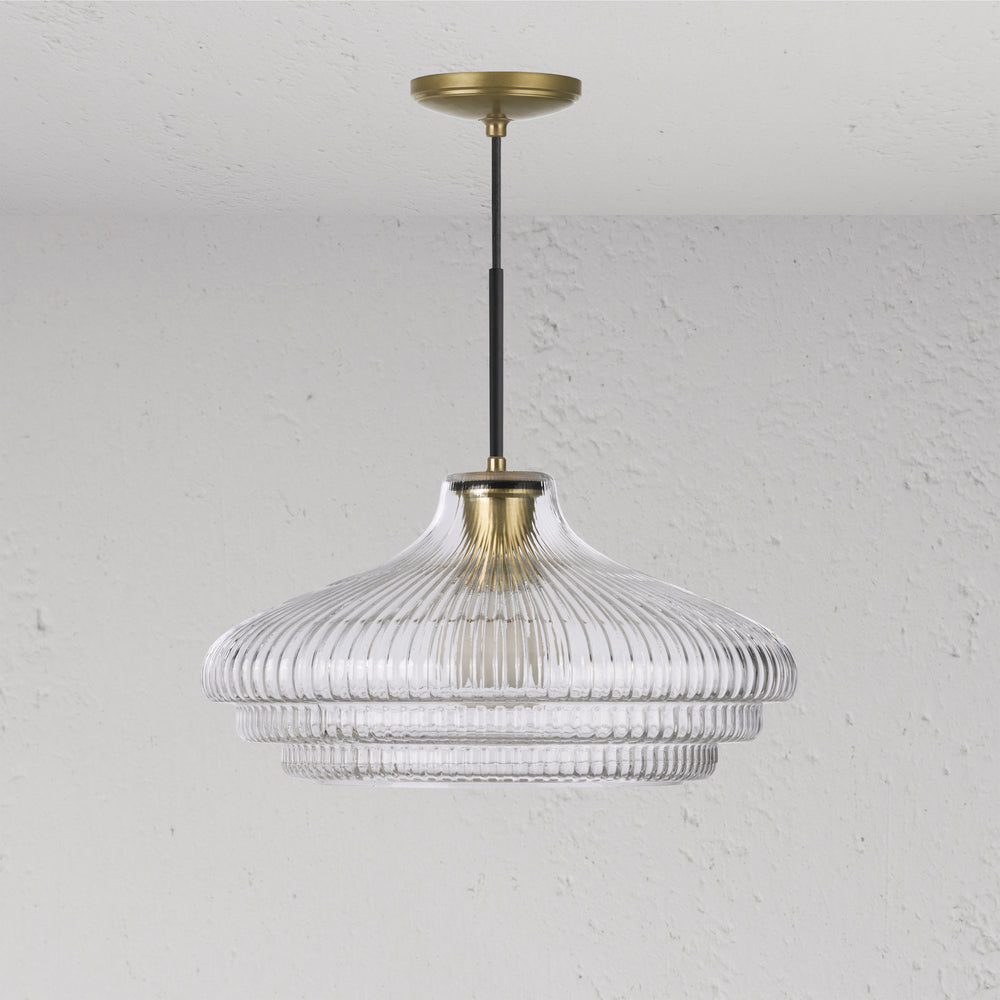 Our Brookfield pendant has an elegantly curved, three-tiered shade and a solid brass bulb holder. It’ll make a subtle statement without outshining other design features in your space.