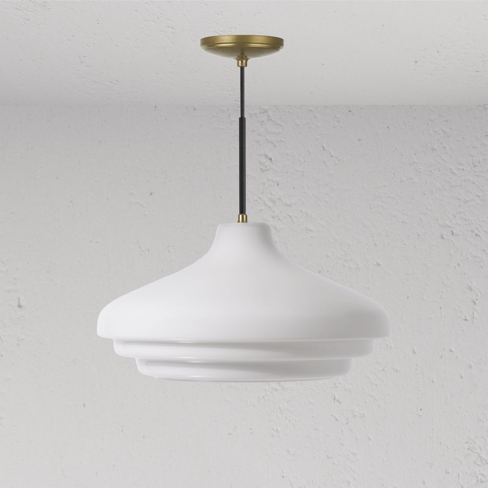 Our Brookfield pendant has an elegantly curved, three-tiered shade and a solid brass bulb holder. It’ll make a subtle statement without outshining other design features in your space.