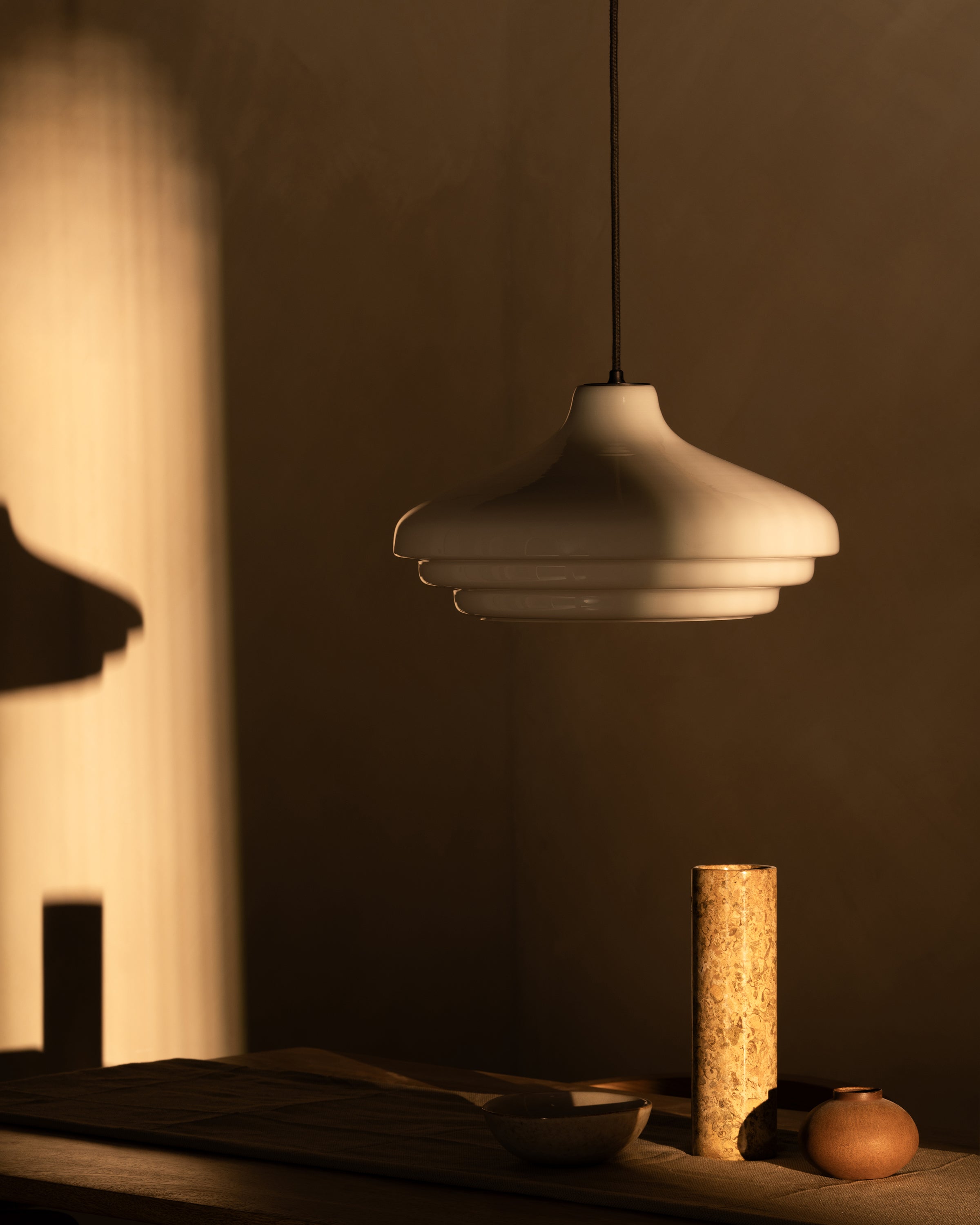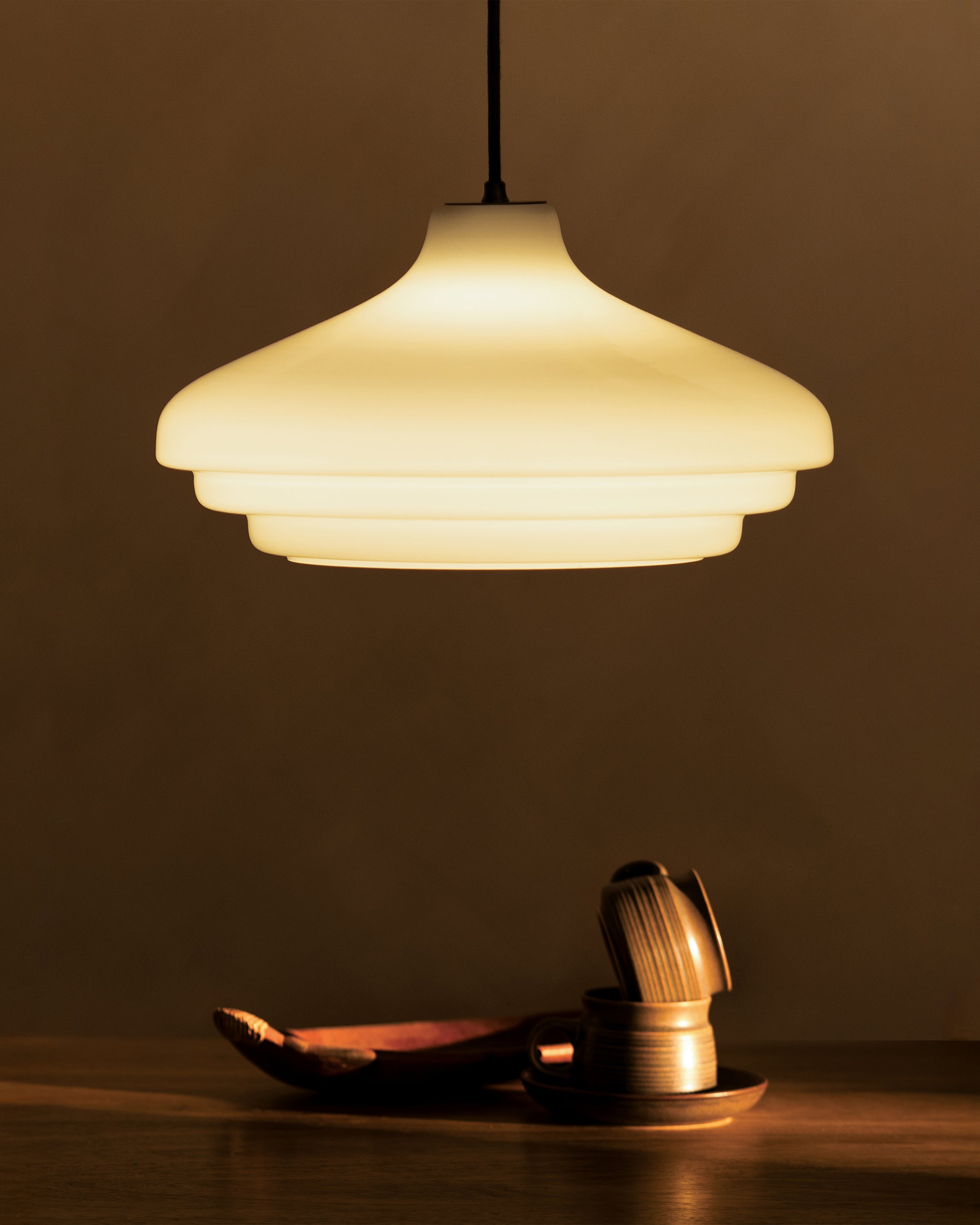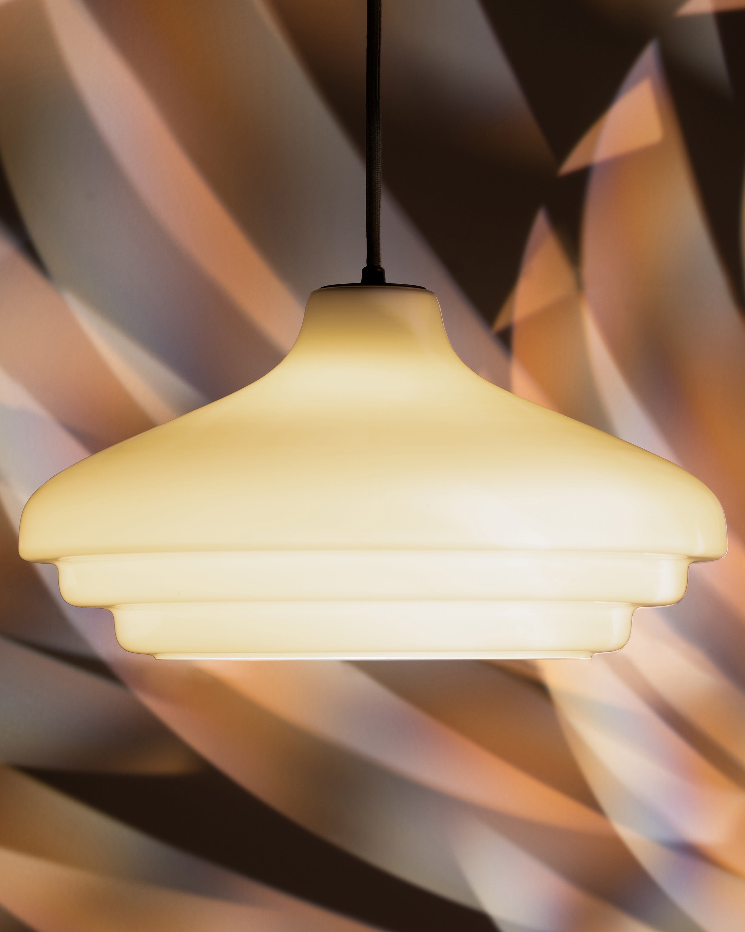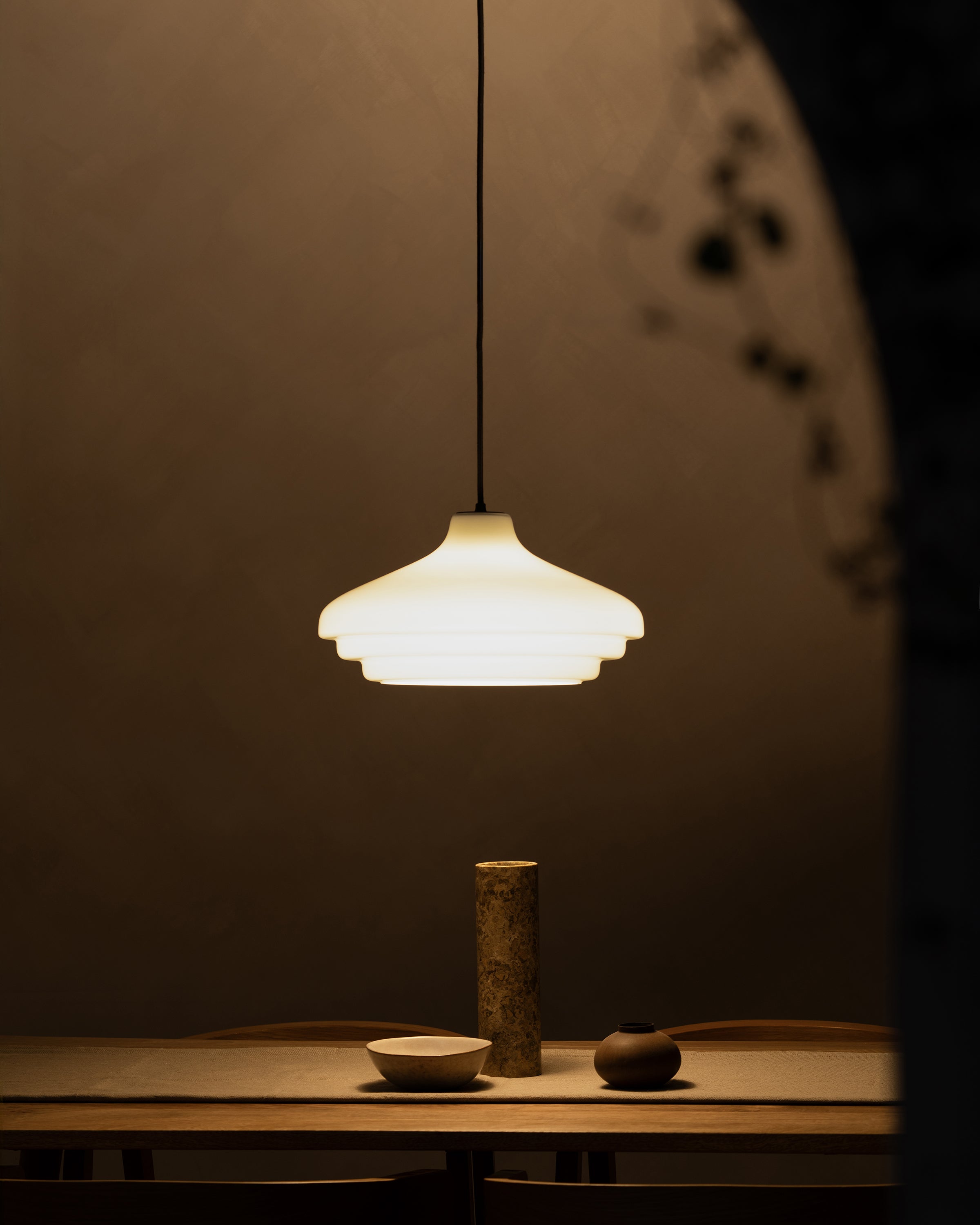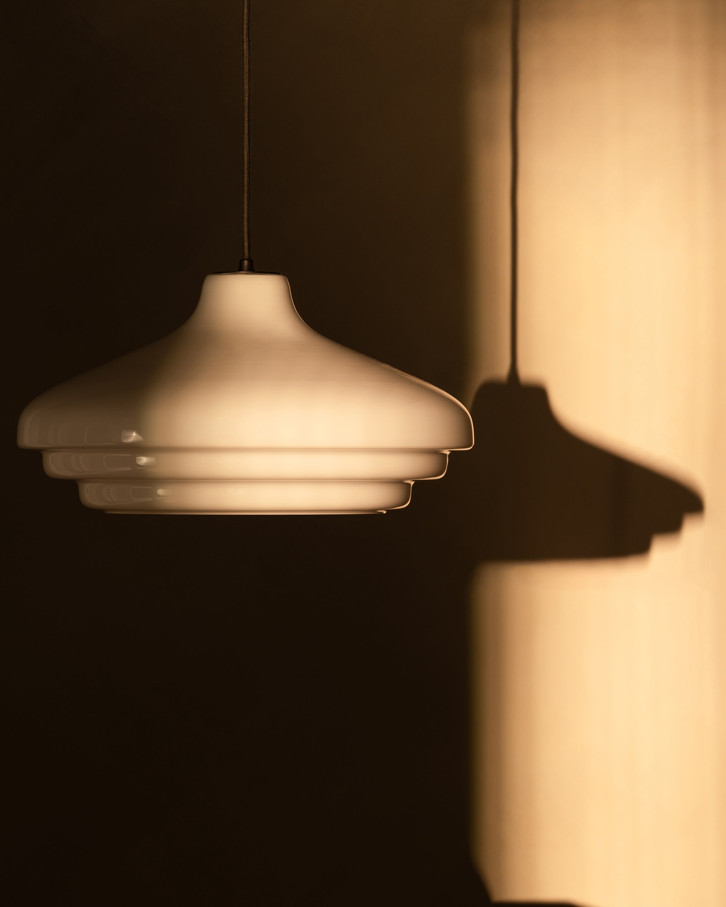 The milky white opal glass is glossier than fine porcelain, but the light it emits is just as warm, atmospheric and free from glare.