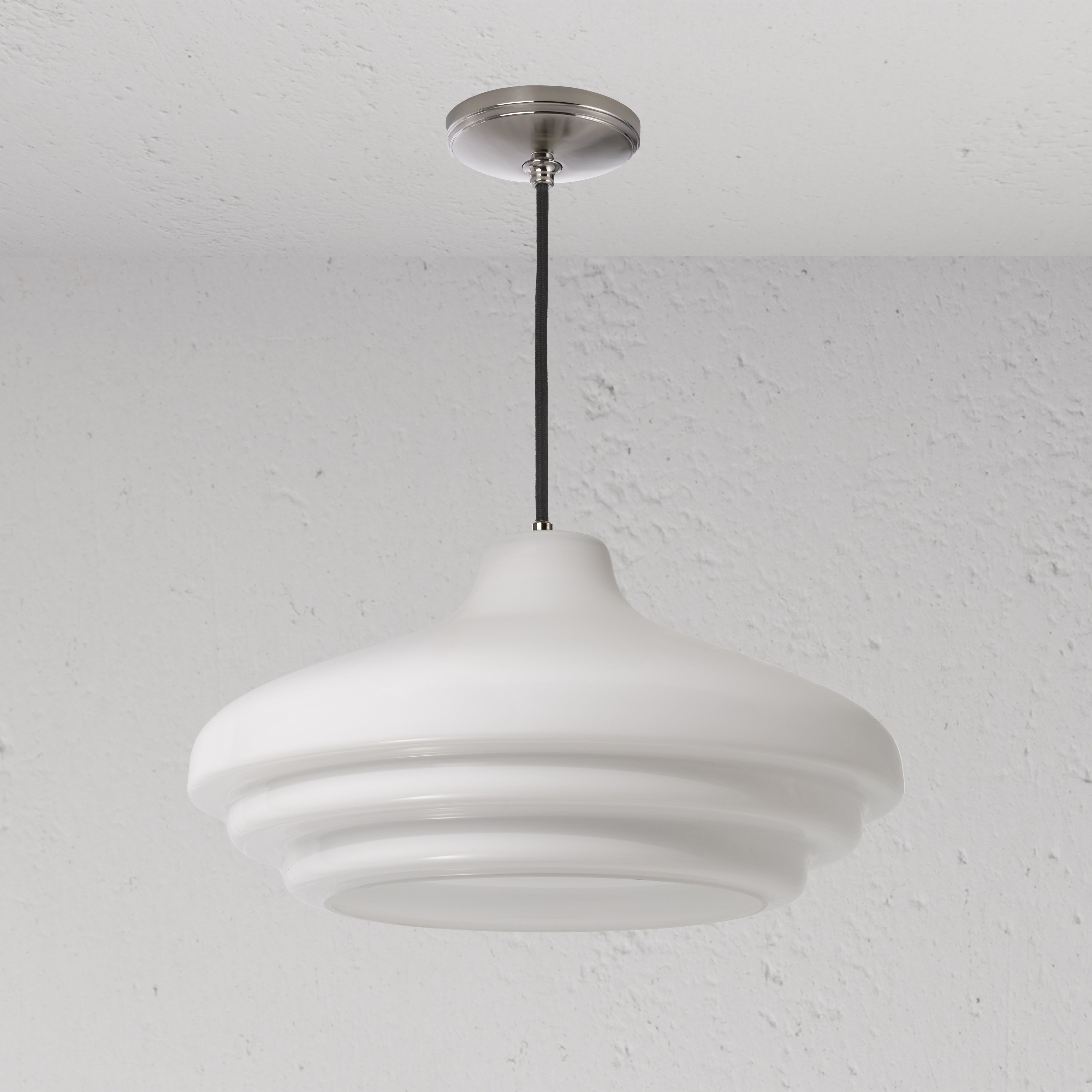 Our Brookfield pendant has an elegantly curved, three-tiered shade and a solid brass bulb holder. It’ll make a subtle statement without outshining other design features in your space.