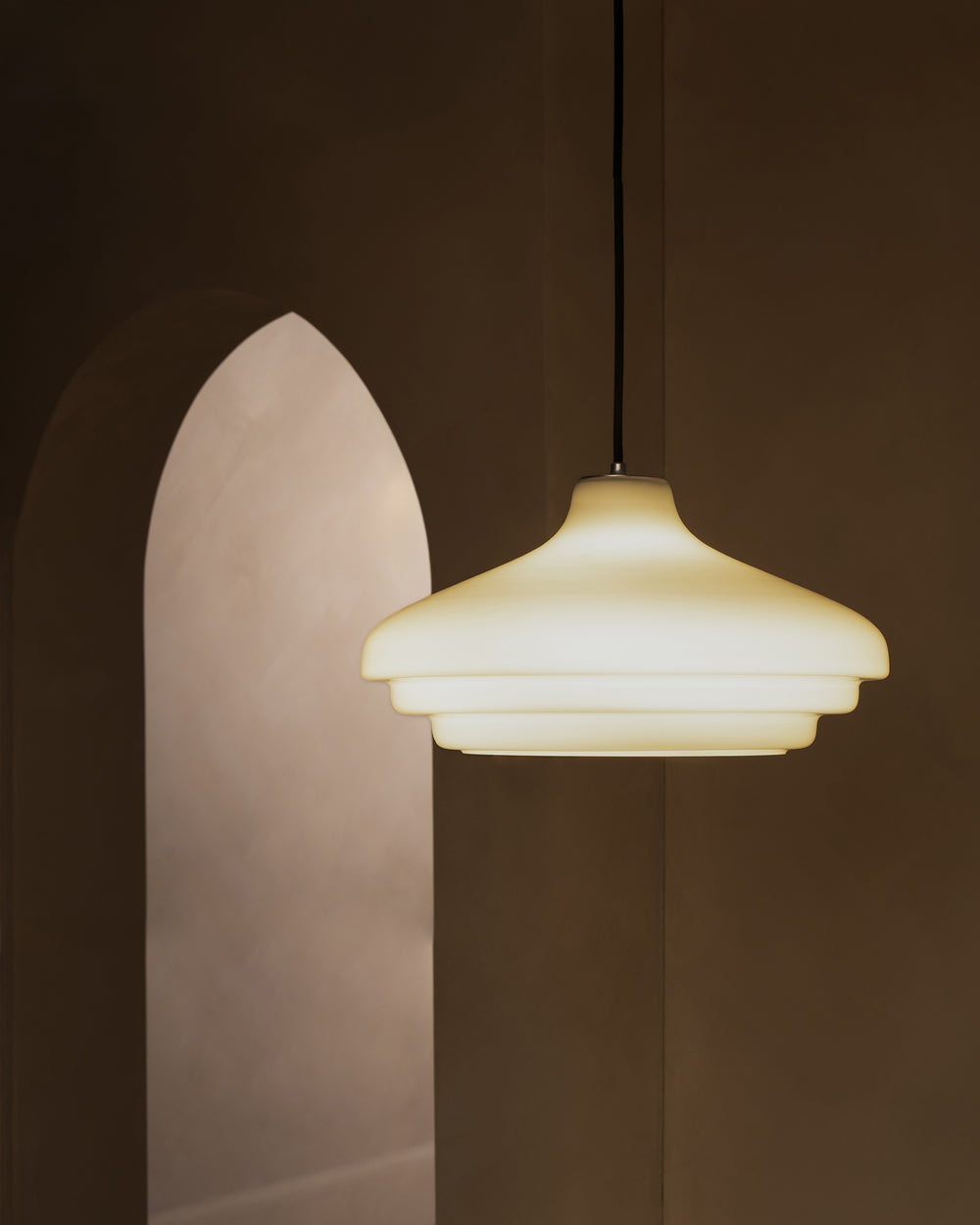 The milky white opal glass is glossier than fine porcelain, but the light it emits is just as warm, atmospheric and free from glare.