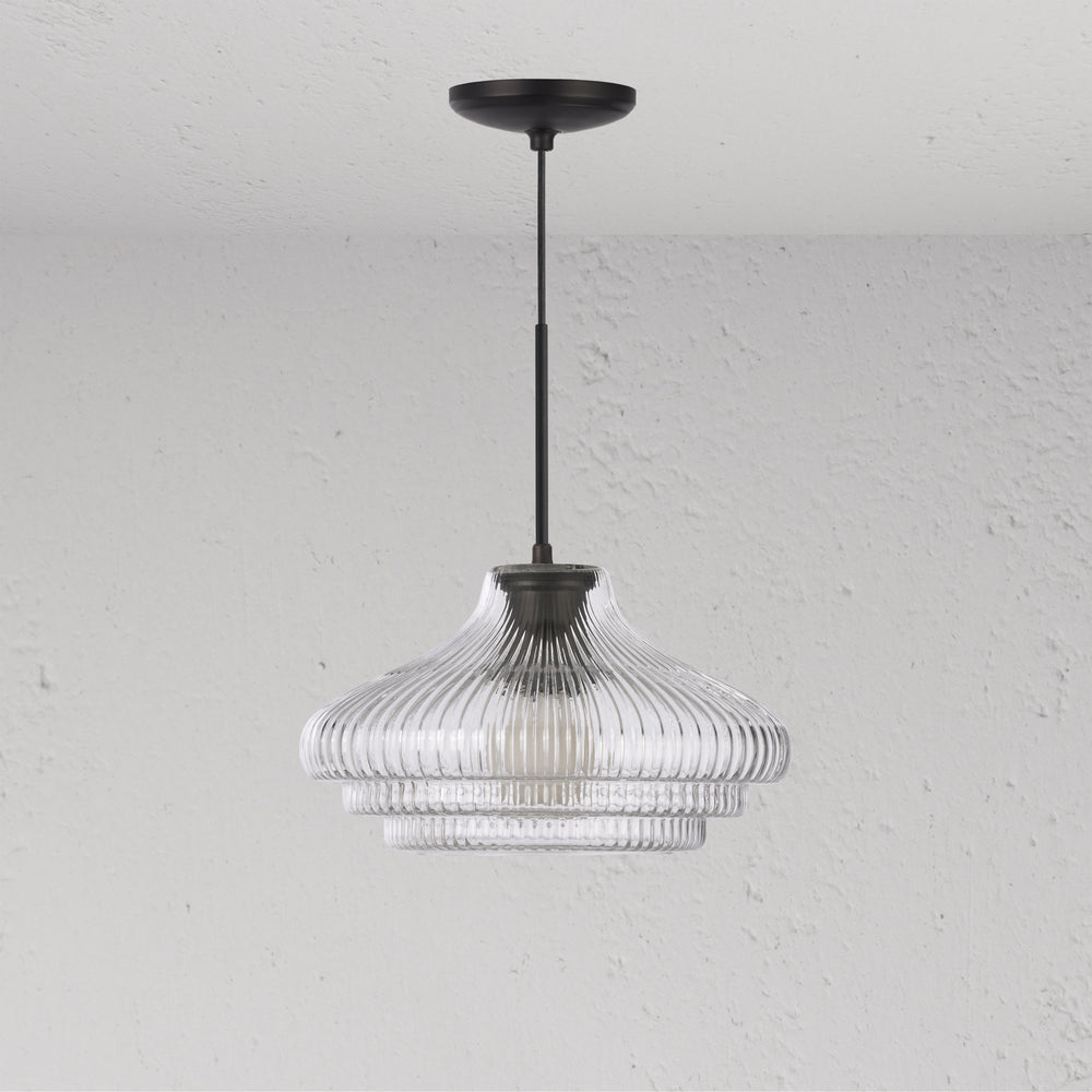 Our Brookfield pendant has an elegantly curved, three-tiered shade and a solid brass bulb holder. It’ll make a subtle statement without outshining other design features in your space.