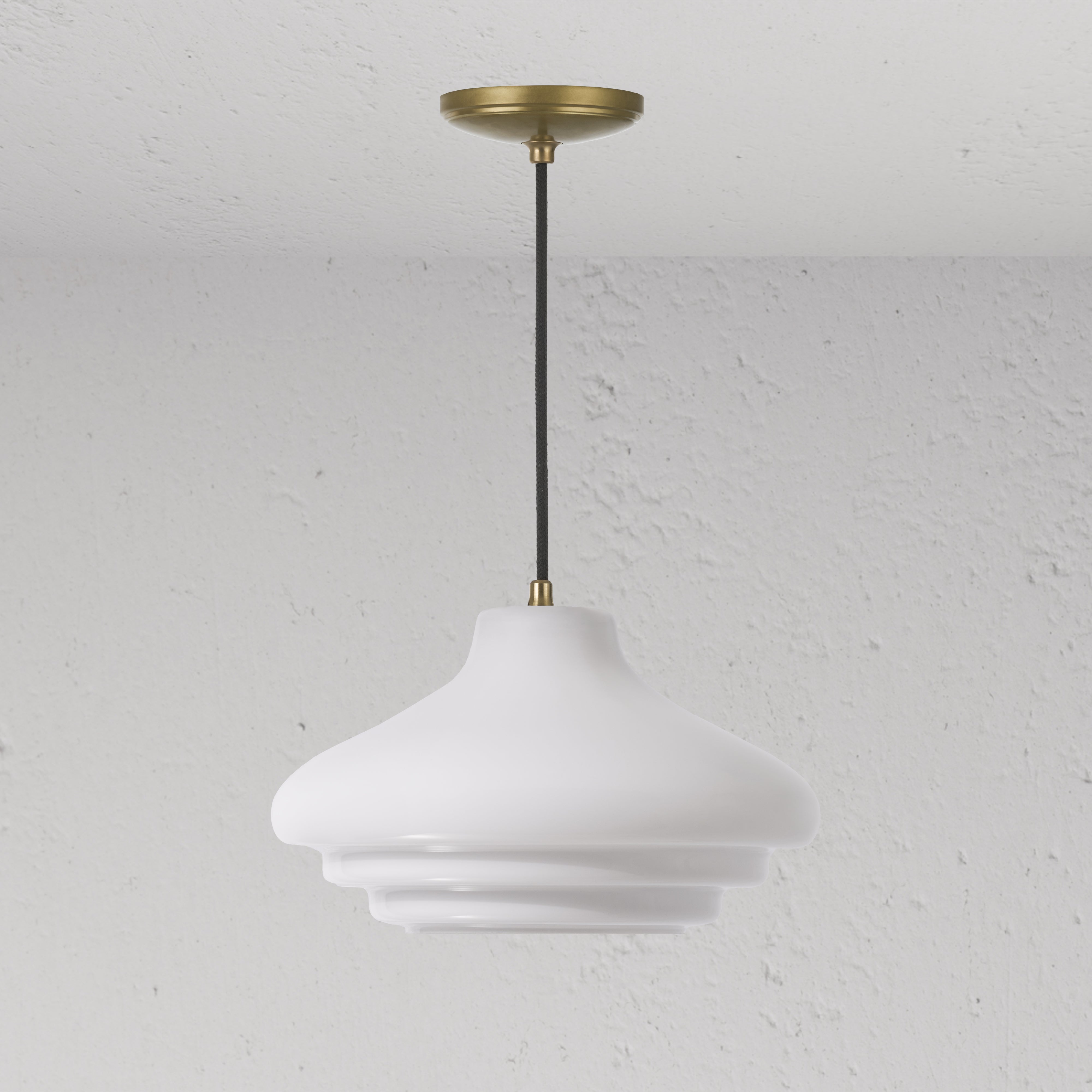 Our Brookfield pendant has an elegantly curved, three-tiered shade and a solid brass bulb holder. It’ll make a subtle statement without outshining other design features in your space.