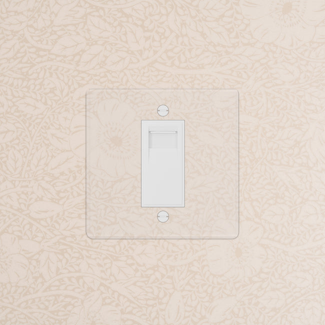 Our clear switches and sockets come with backing paper that you can either paint, or use as a wallpaper template. When you're happy with your chosen look, secure the clear front plate over the backing paper to conceal the wires.