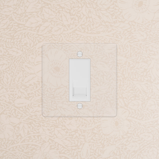 Our clear switches and sockets come with backing paper that you can either paint, or use as a wallpaper template. When you're happy with your chosen look, secure the clear front plate over the backing paper to conceal the wires.
