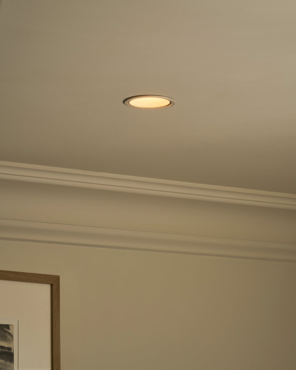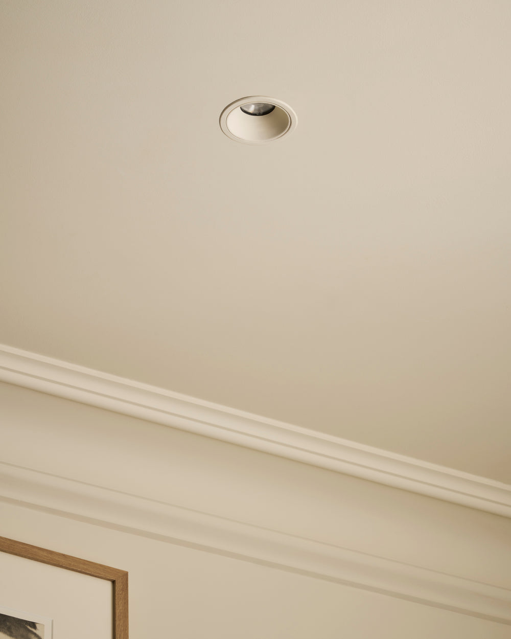 This version of our Buxton downlight comes with a subtle, paintable bezel that provides a clean, finished look. Unlike our trimless style, it doesn’t need plastering into the ceiling.