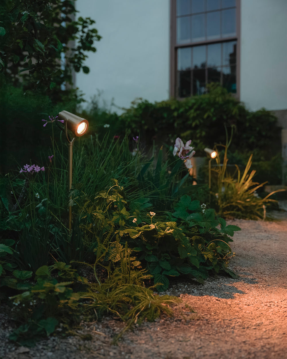 The ground spotlight can be directed upwards or downwards to illuminate a variety of garden features, including pathways, flowerbeds, trees and external walls.