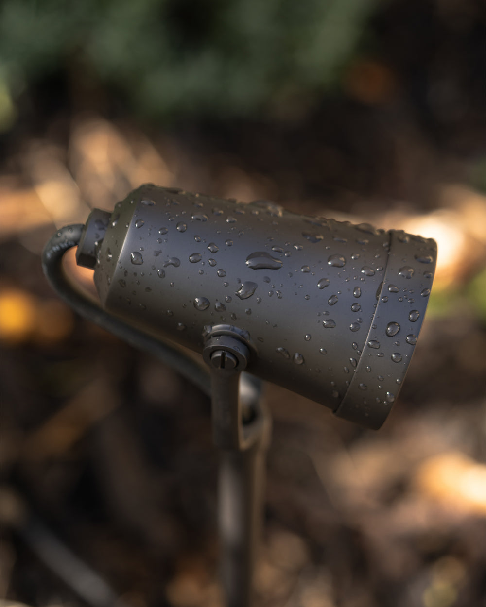 The ground spotlight can be directed upwards or downwards to illuminate a variety of garden features, including pathways, flowerbeds, trees and external walls.