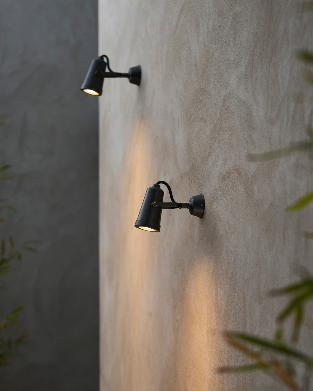 The wall-mounted spotlight is designed to be directed downwards to illuminate garden paths, flowerbeds and the like.