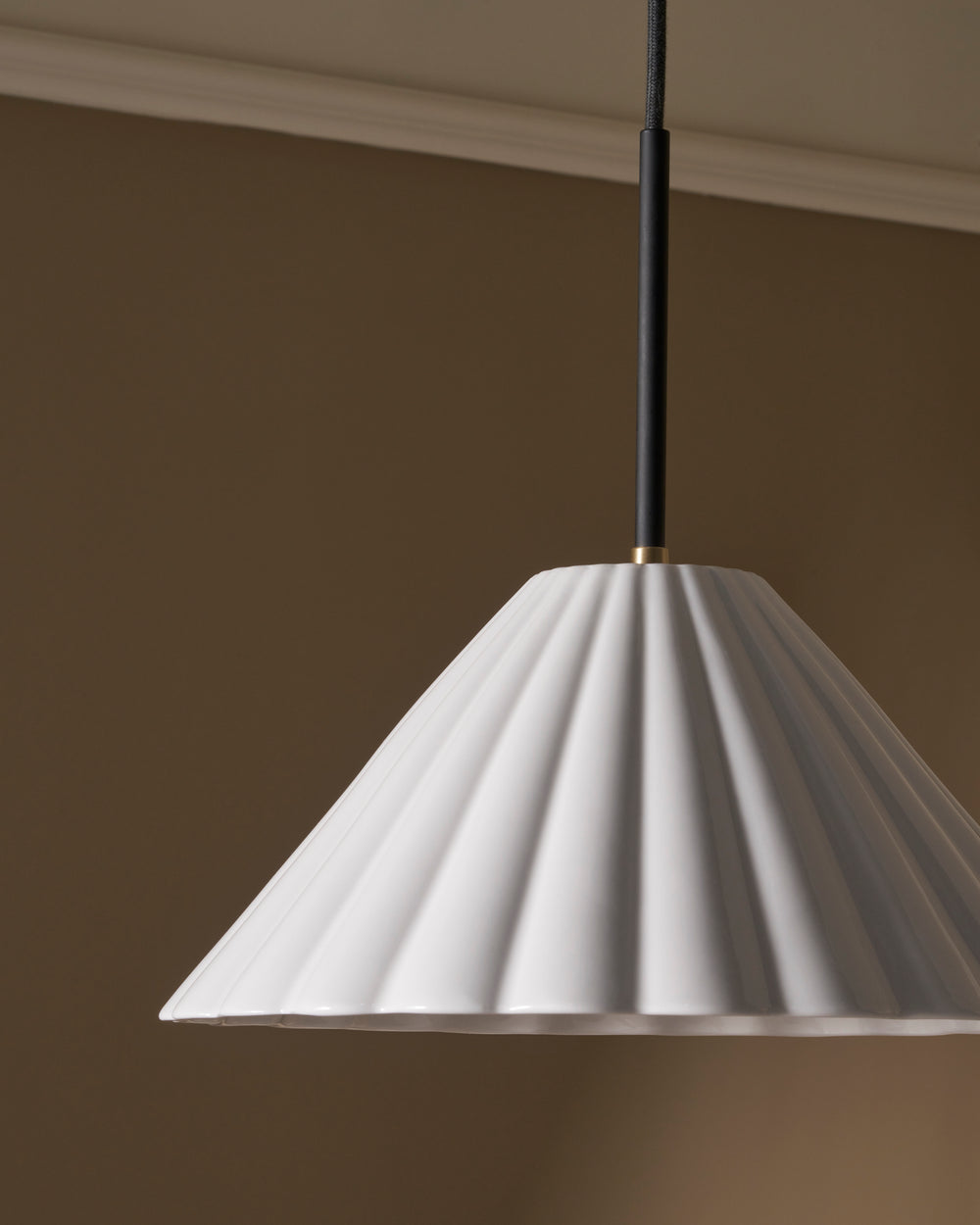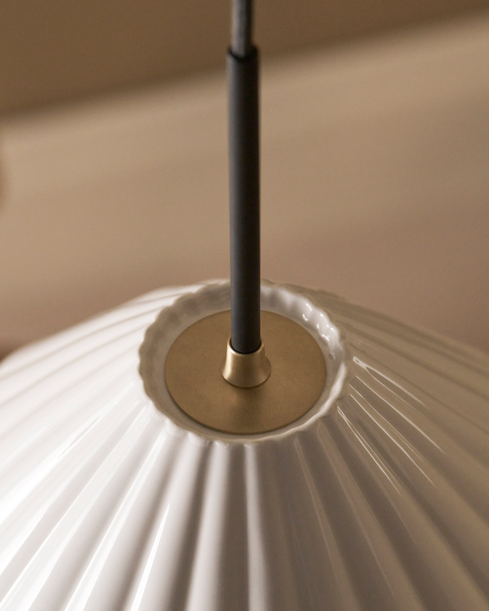 The gently scalloped fine porcelain shade provides a warm, atmospheric glow with absolutely no glare. We’ve opted for a very subtle scallop that won’t go out of style.