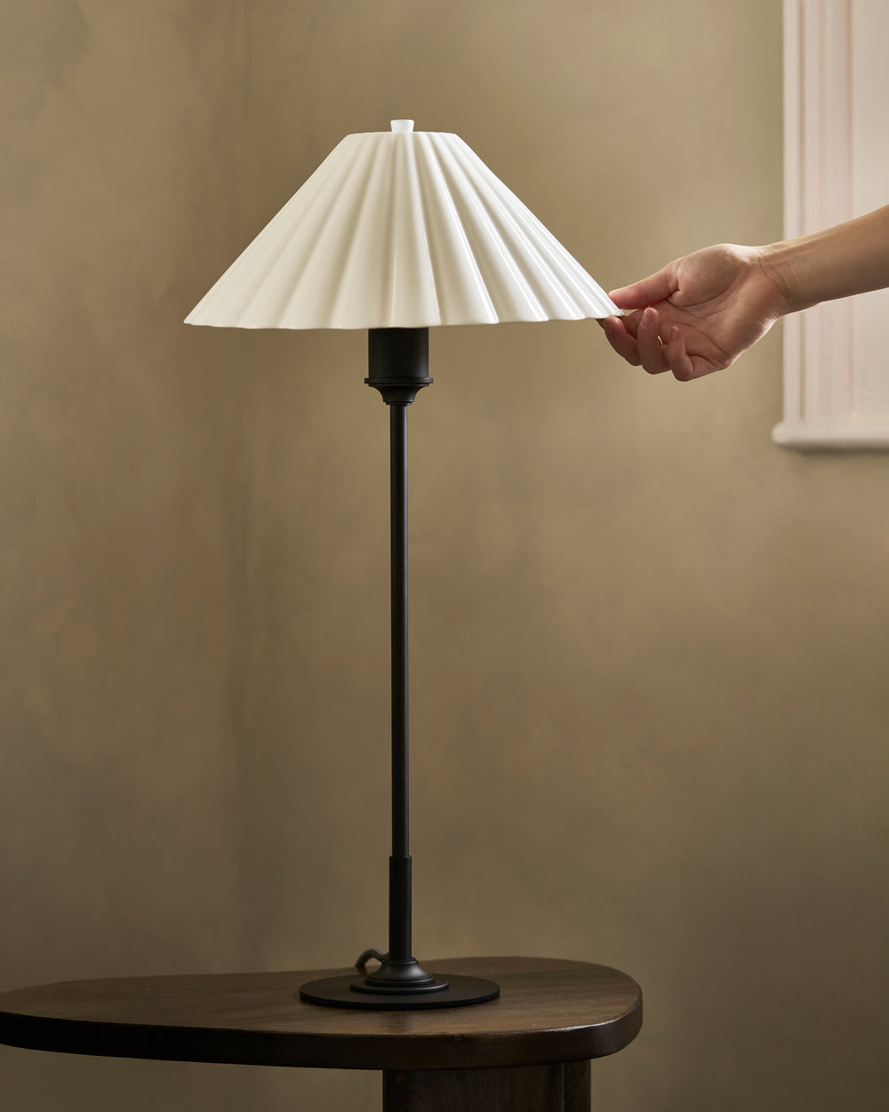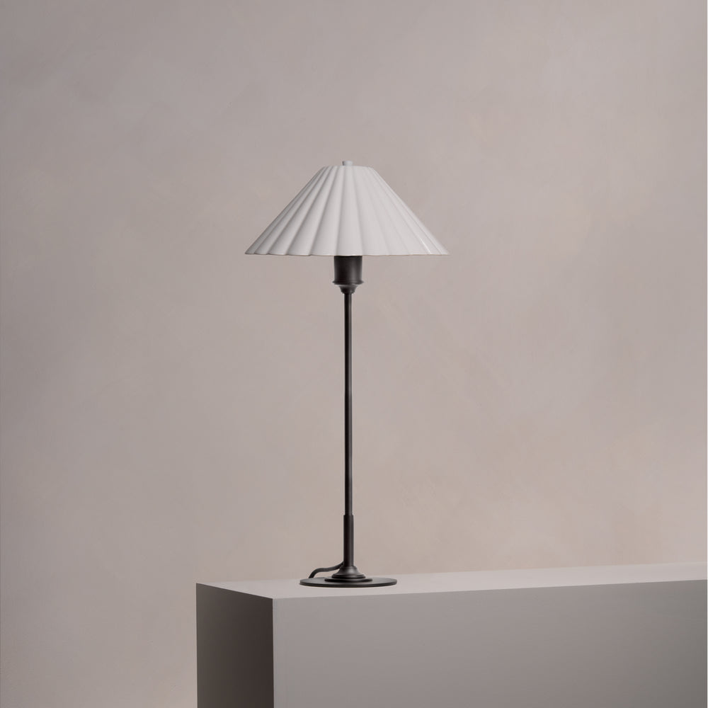The gently scalloped fine porcelain shade provides a warm, atmospheric glow with absolutely no glare. We’ve opted for a very subtle scallop that won’t go out of style.