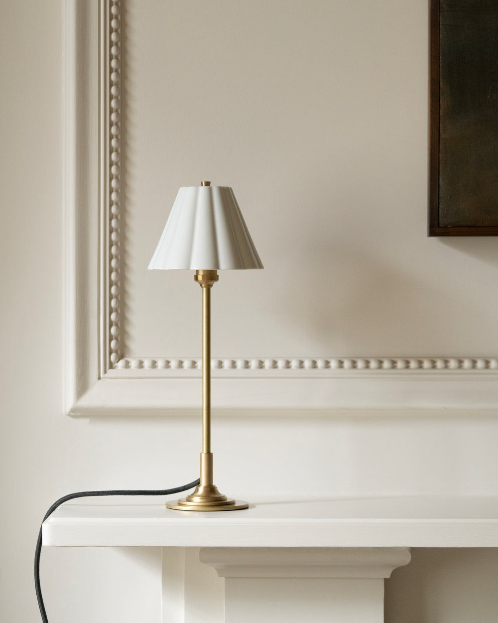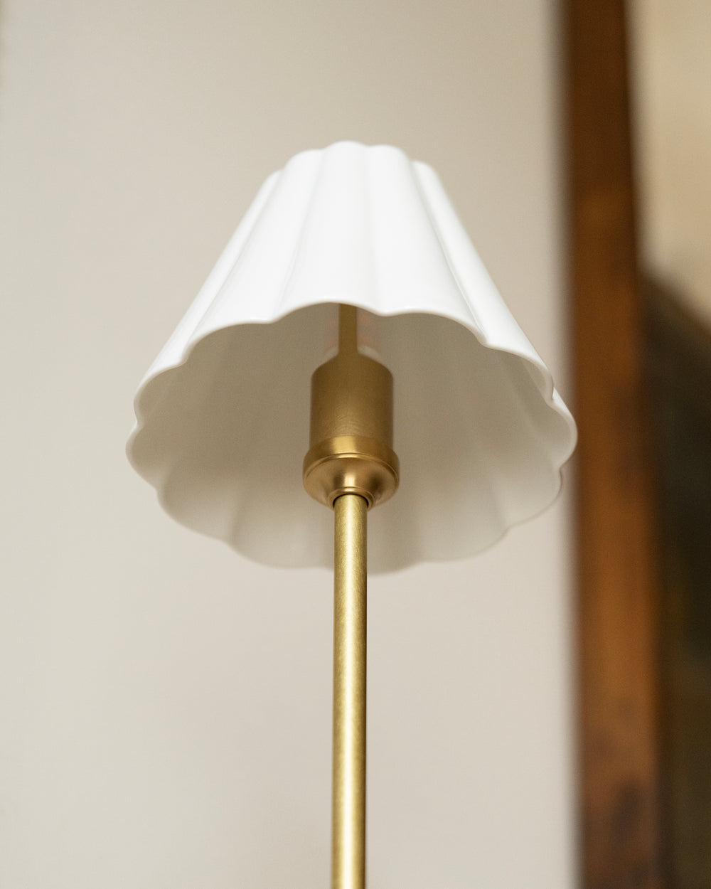 The gently scalloped fine porcelain shade provides a warm, atmospheric glow with absolutely no glare. We’ve opted for a very subtle scallop that won’t go out of style.