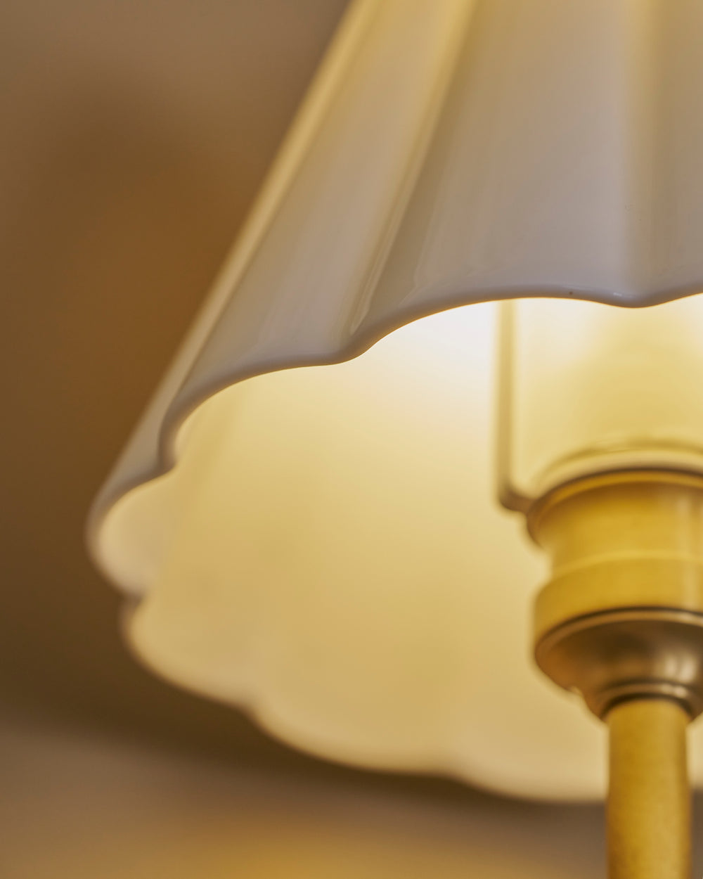 The gently scalloped fine porcelain shade provides a warm, atmospheric glow with absolutely no glare. We’ve opted for a very subtle scallop that won’t go out of style.