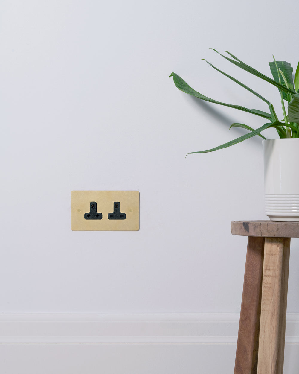 This double mixed socket combines a 13A and 5A unswitched socket on one plate.