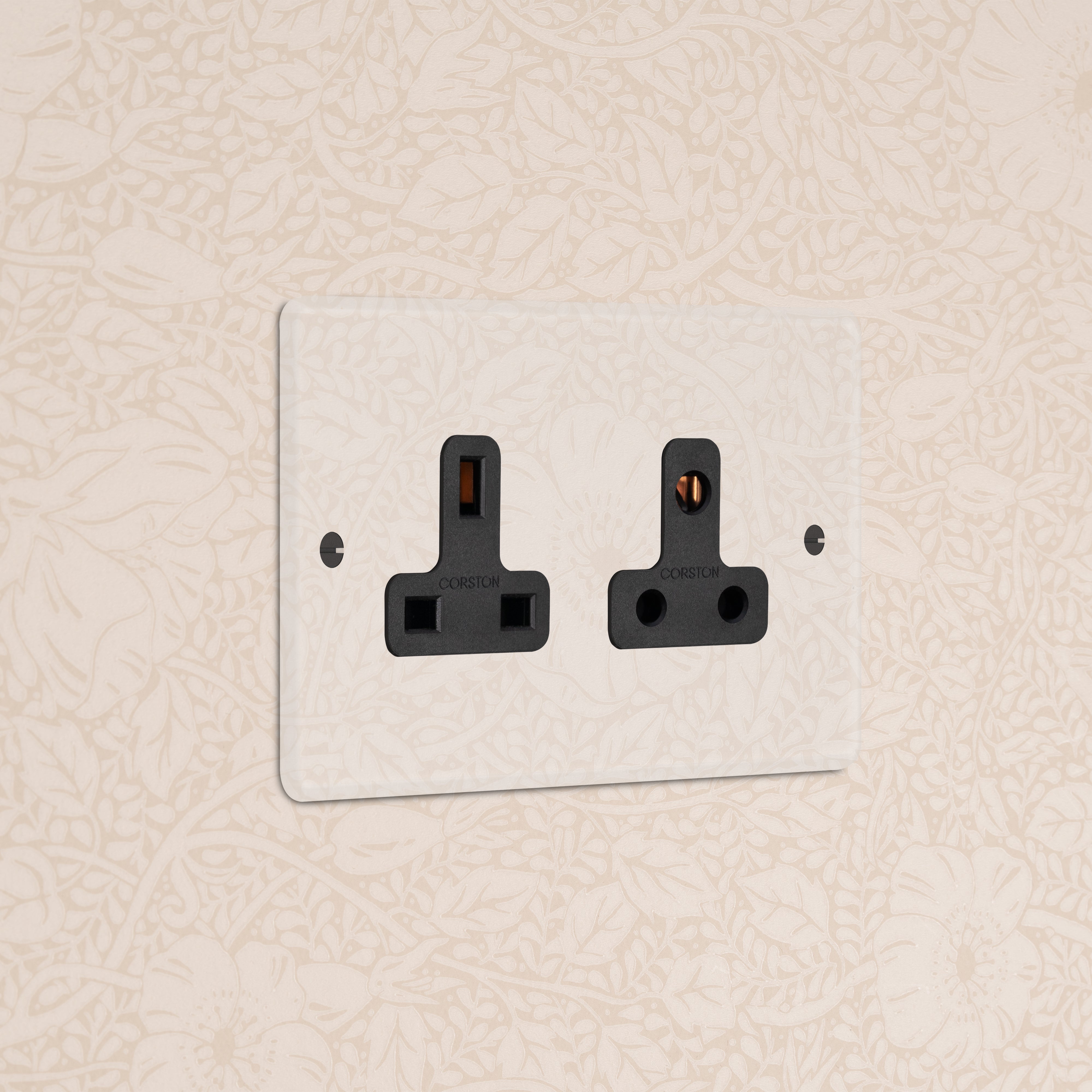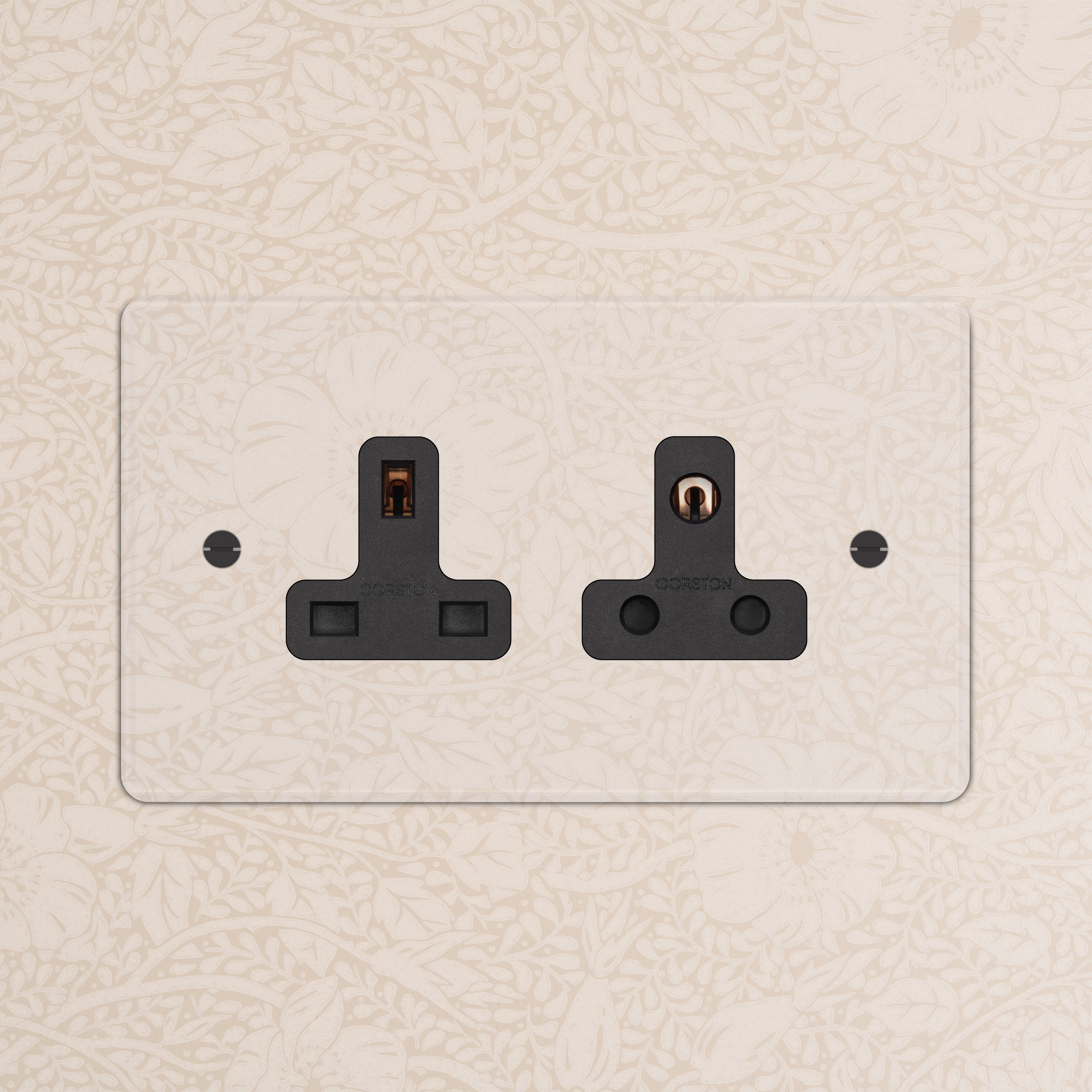 This double mixed socket combines a 13A and 5A unswitched socket on one plate.