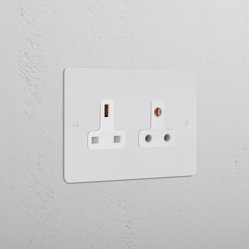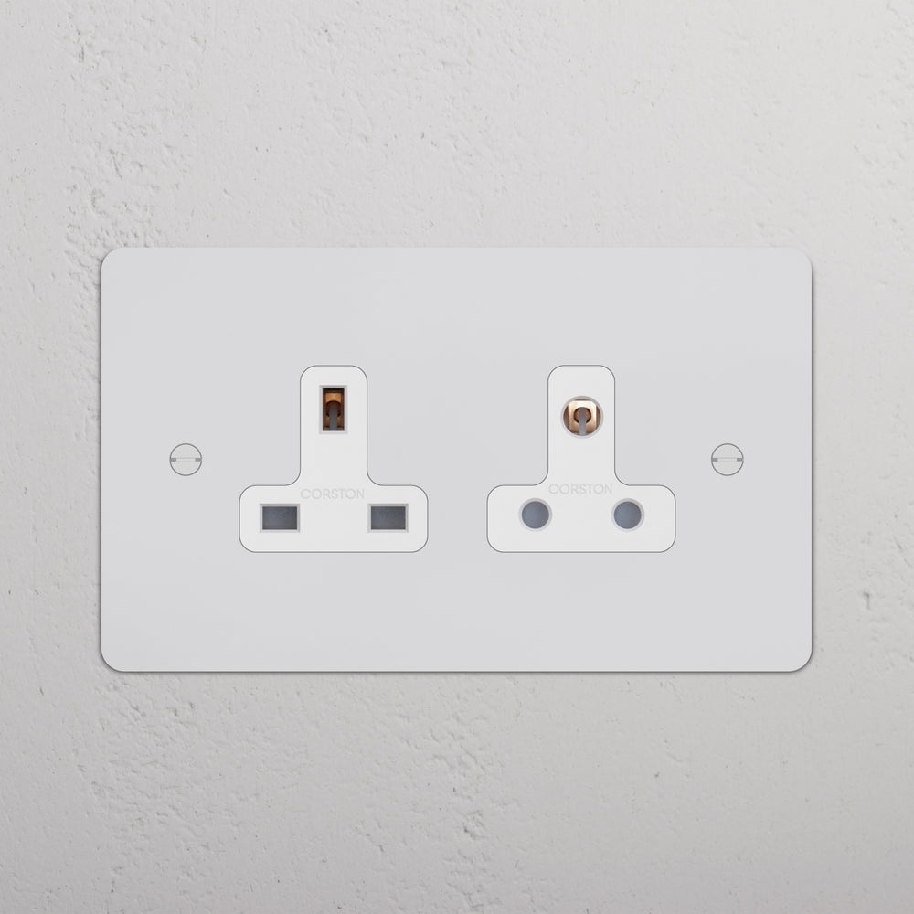 This double mixed socket combines a 13A and 5A unswitched socket on one plate.