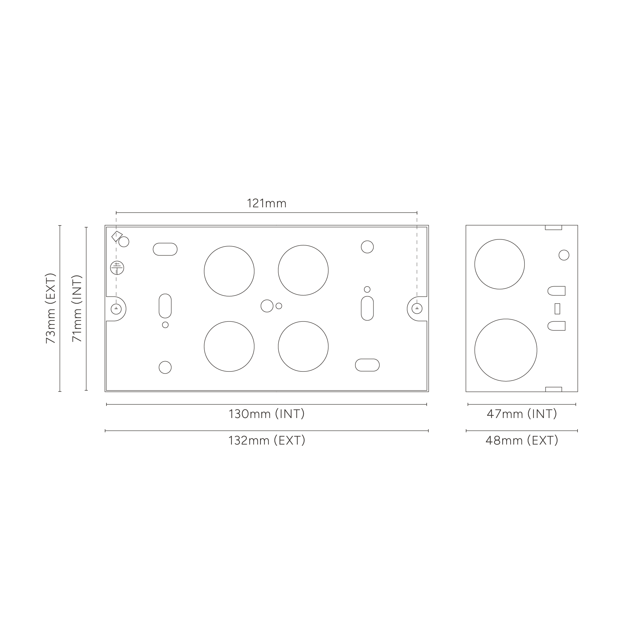 All Corston switches and sockets require a back box with a minimum depth of 35-47mm. It's the only way you'll achieve a flush finish. Our 6G and 8G switches must be used with a Corston double metal back box. because of the bespoke size.