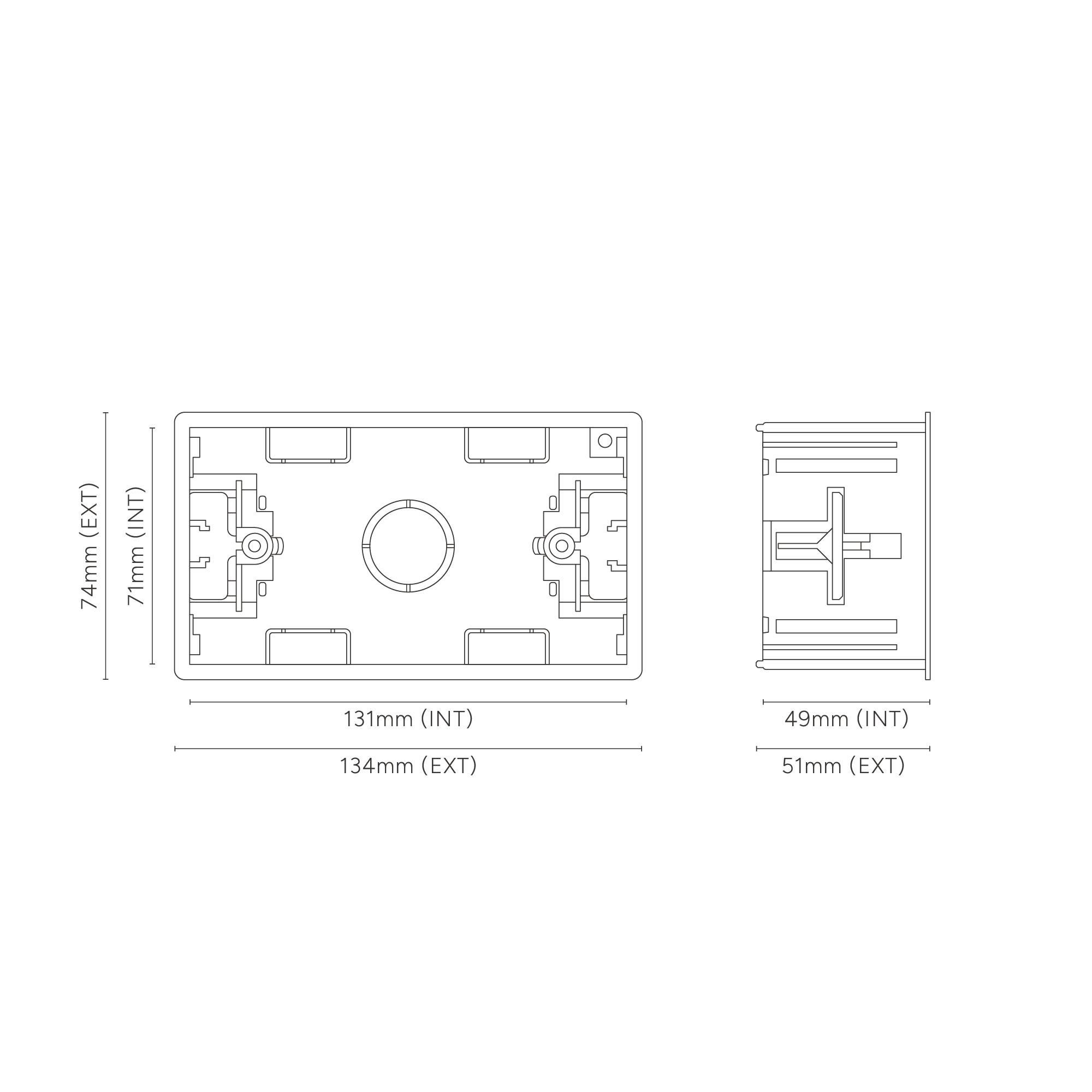 All Corston switches and sockets require a back box with a minimum depth of 35-47mm. It's the only way you'll achieve a flush finish. Our 6G and 8G switches must be used with a Corston double metal back box. because of the bespoke size.