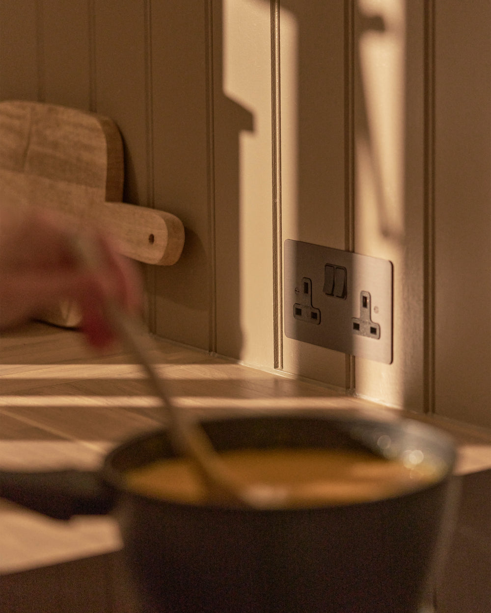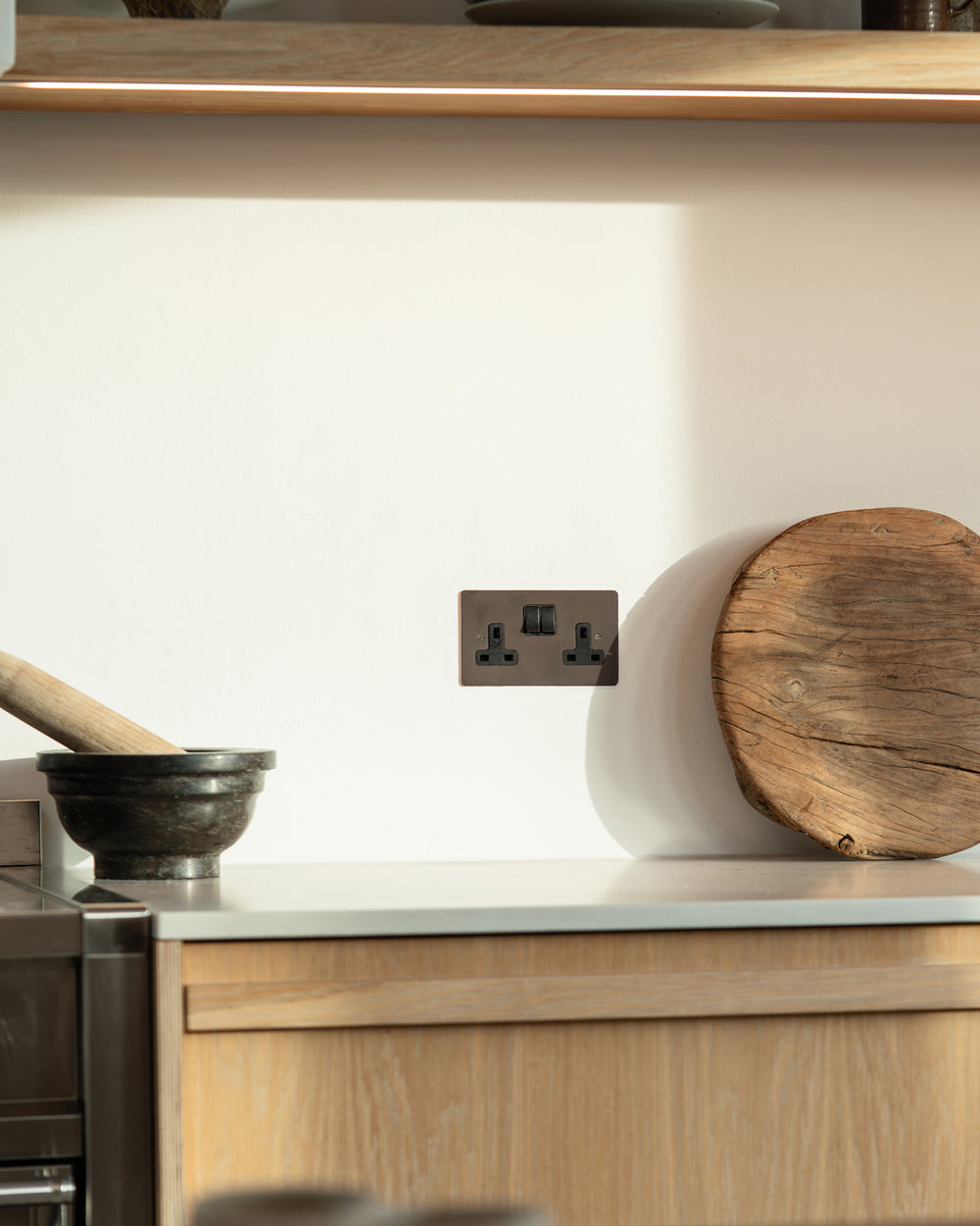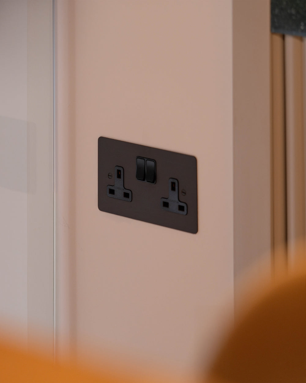 The switches and sockets in our collection are particularly subtle thanks to the really slim front plates that sit perfectly flush to the wall.