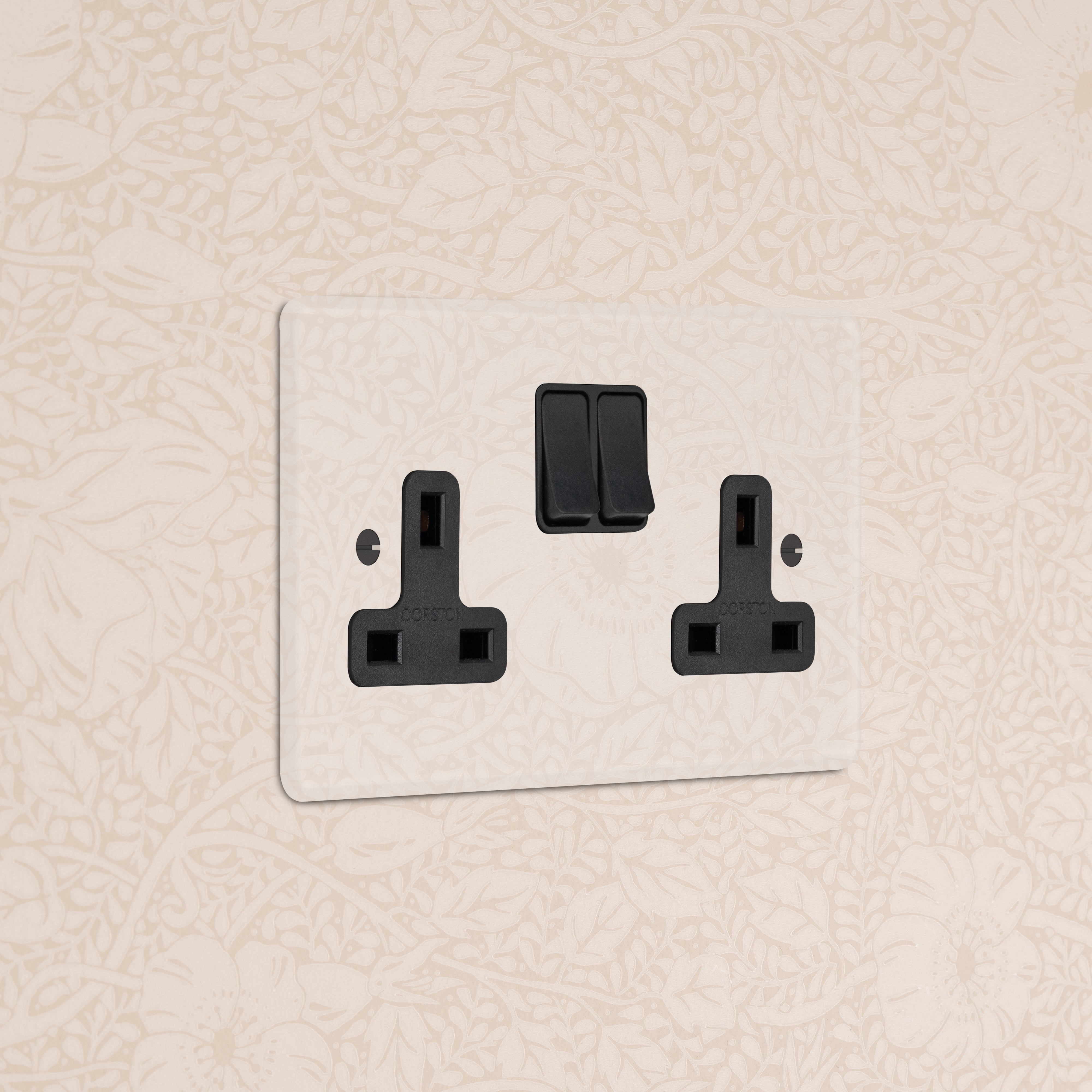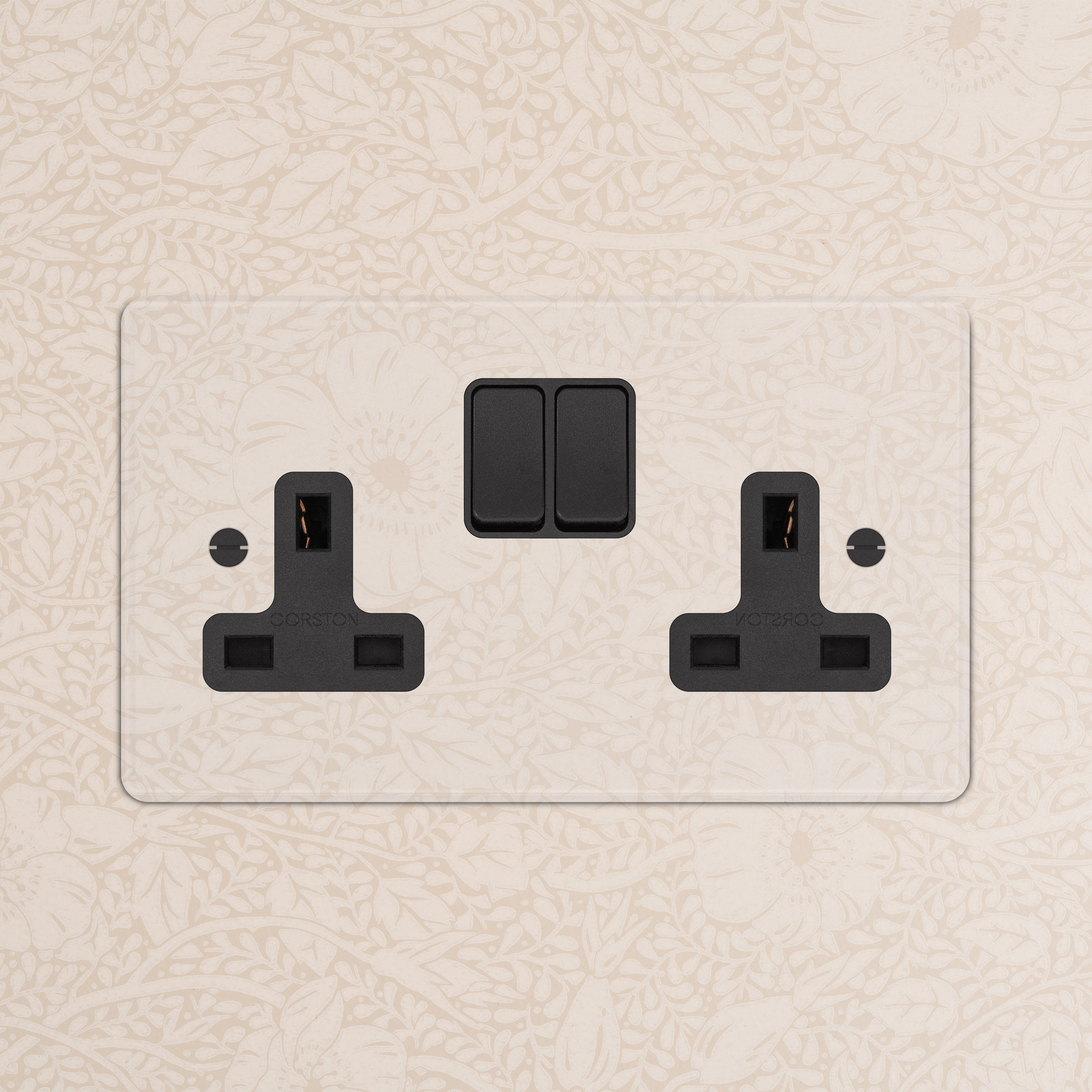 The low-sheen, slightly textured switches and the plastic inserts around the sockets come in black (like this one) or white.