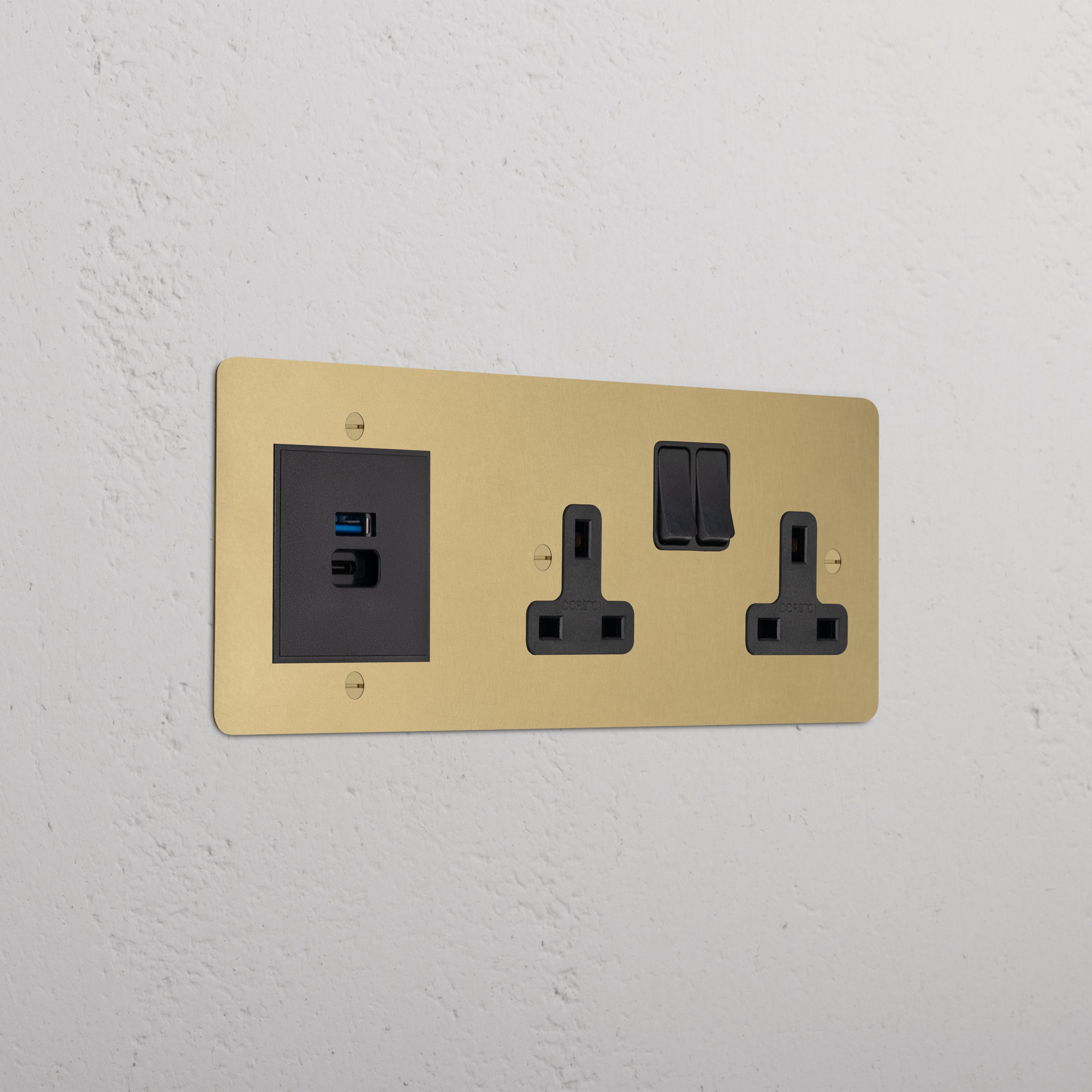 This triple mixed socket combines a two standard UK sockets and a dual USB-A+C socket on one plate.