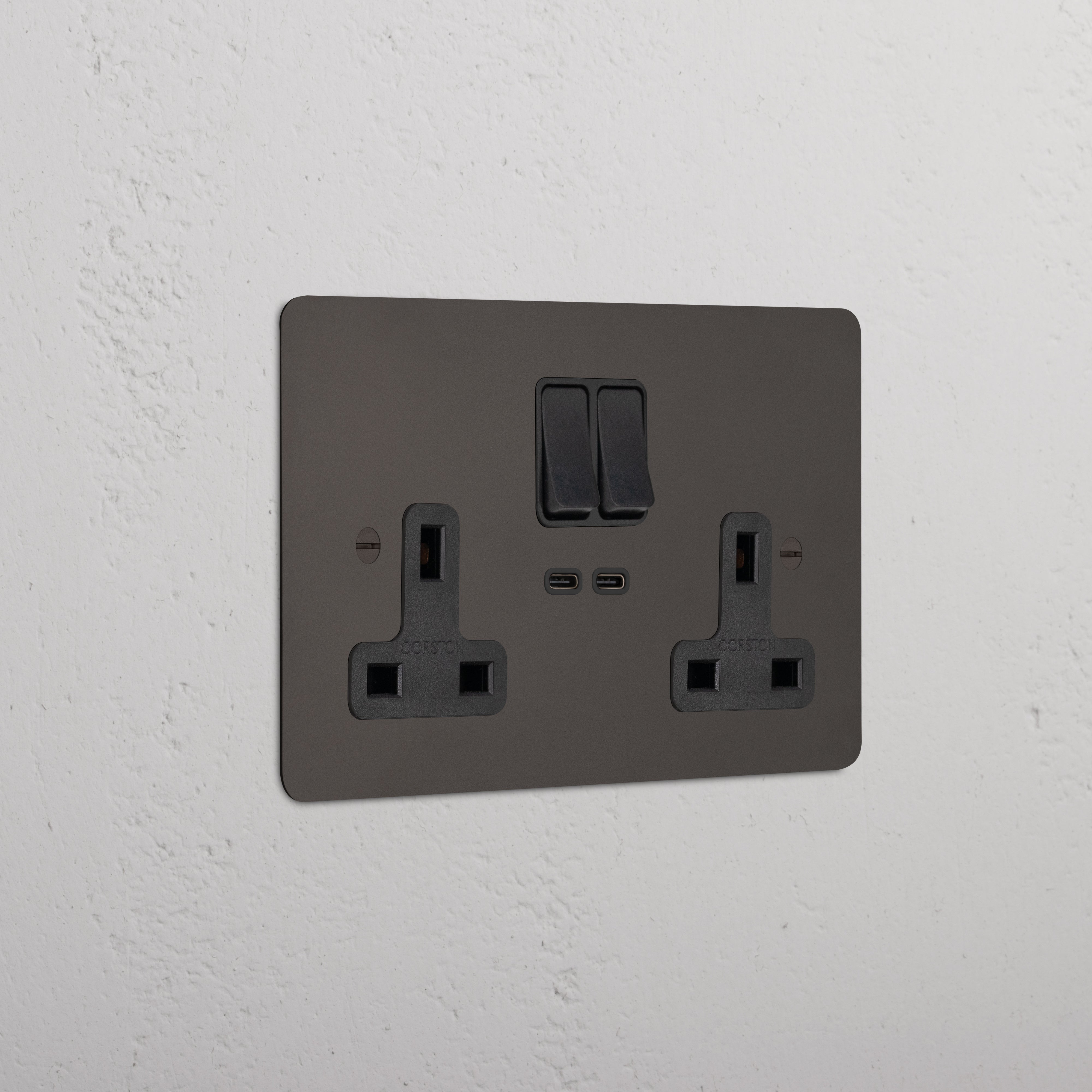 This double mixed socket combines a standard UK socket and two USB-C ports on one plate.