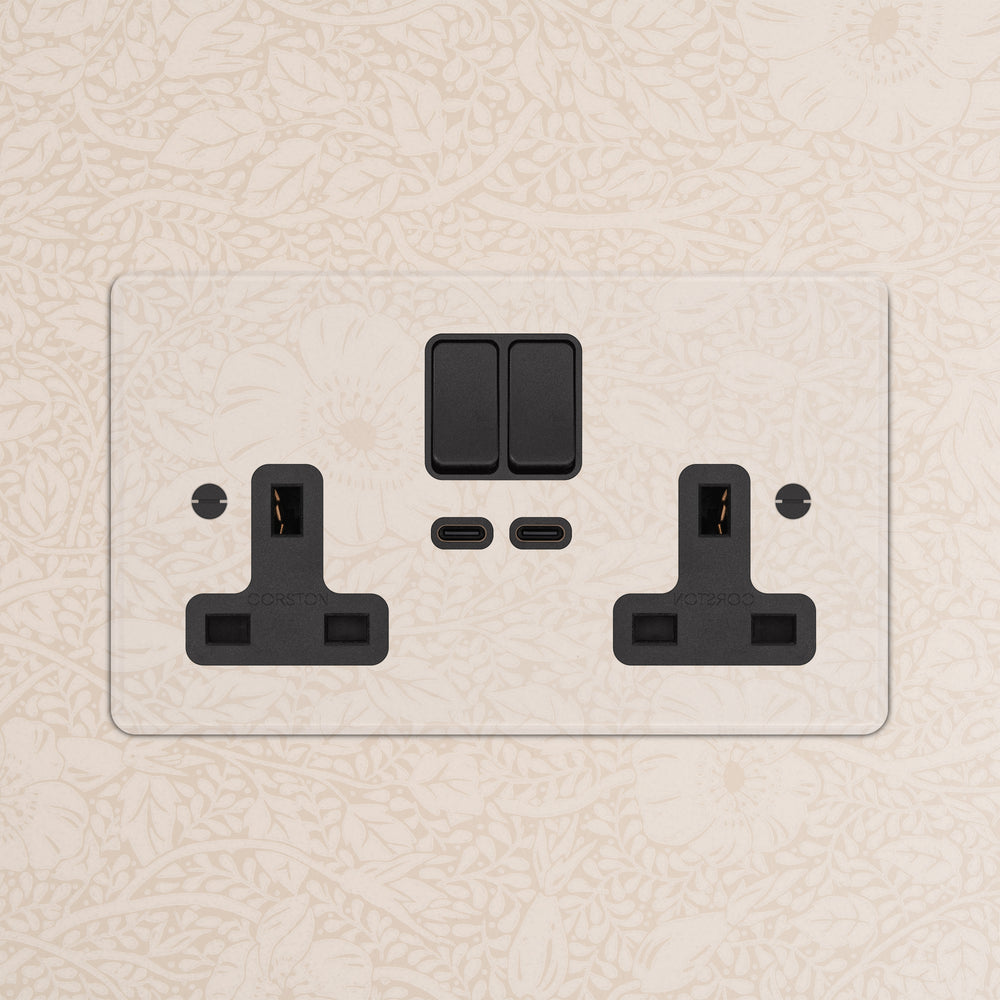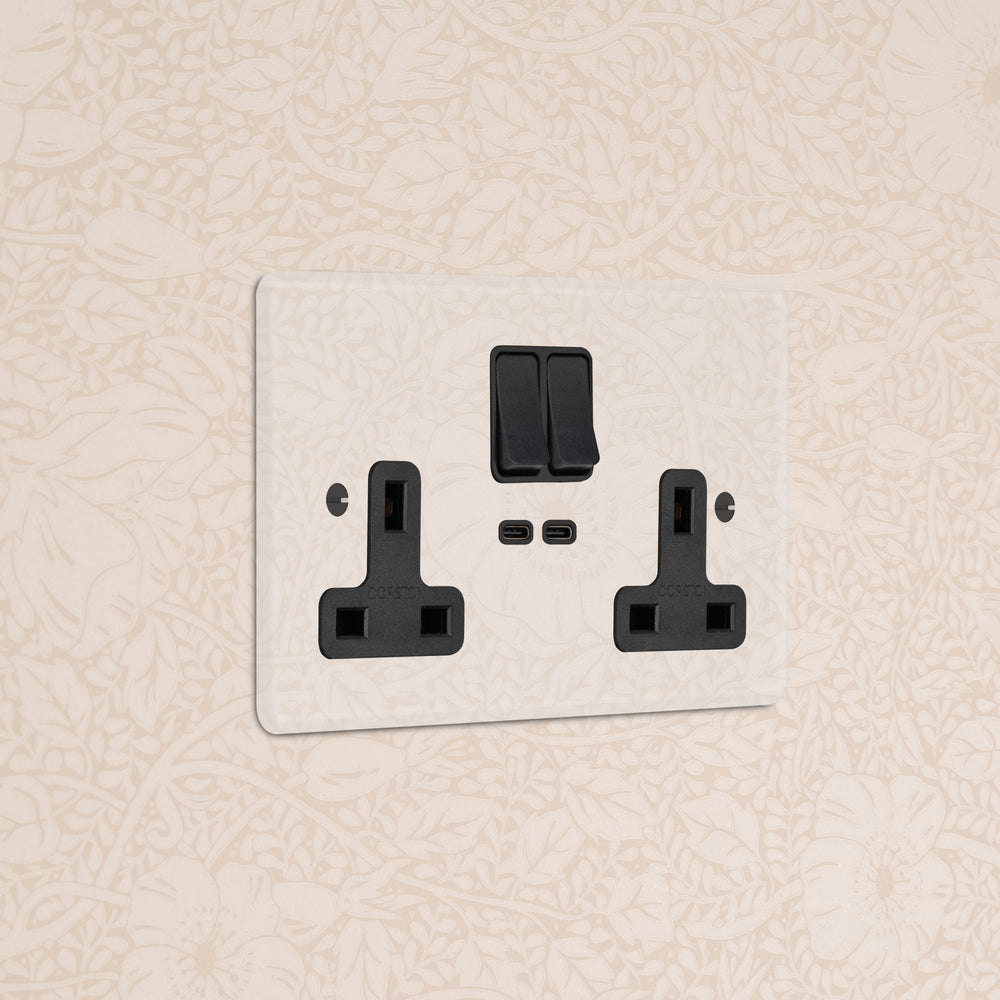 This double mixed socket combines a standard UK socket and two USB-C ports on one plate.