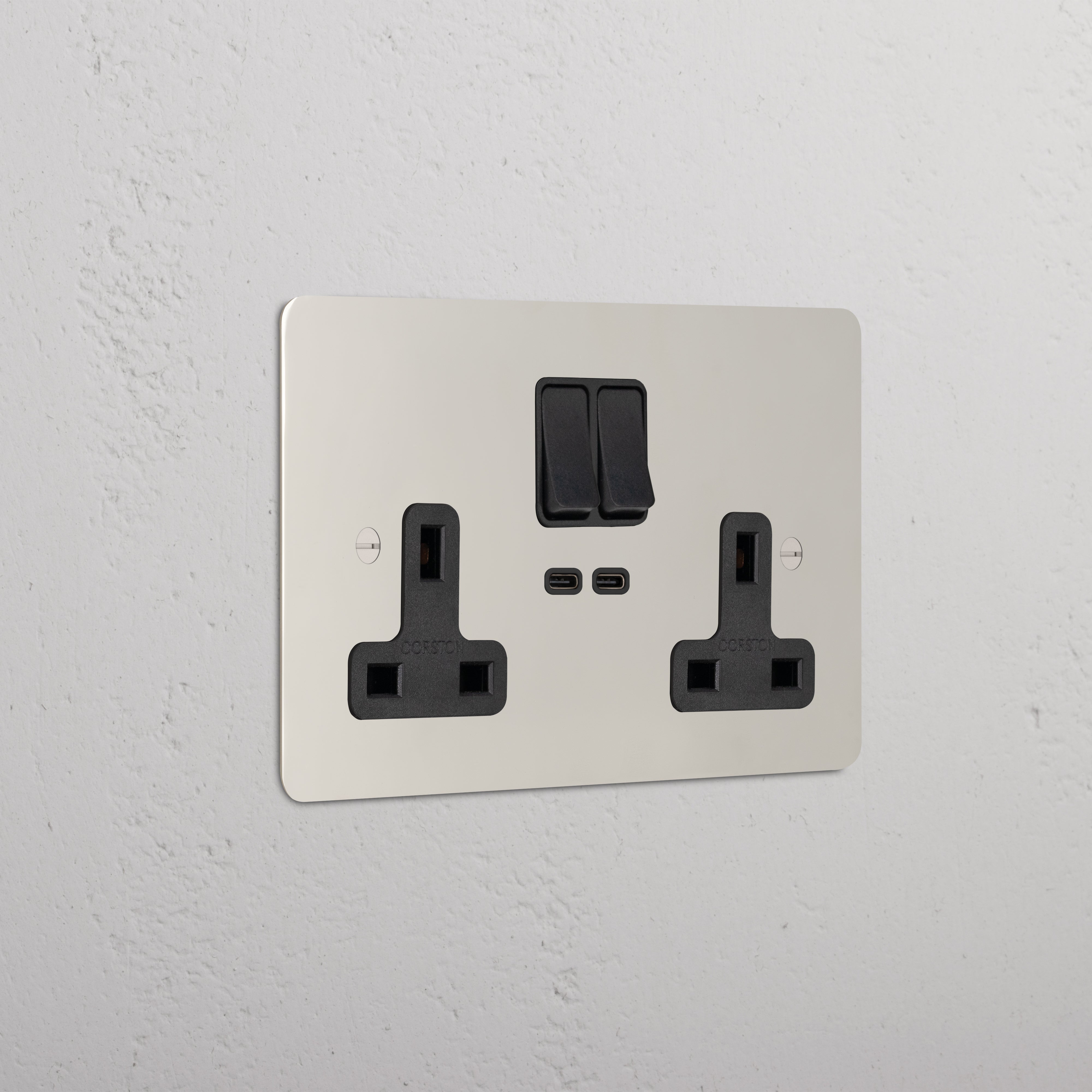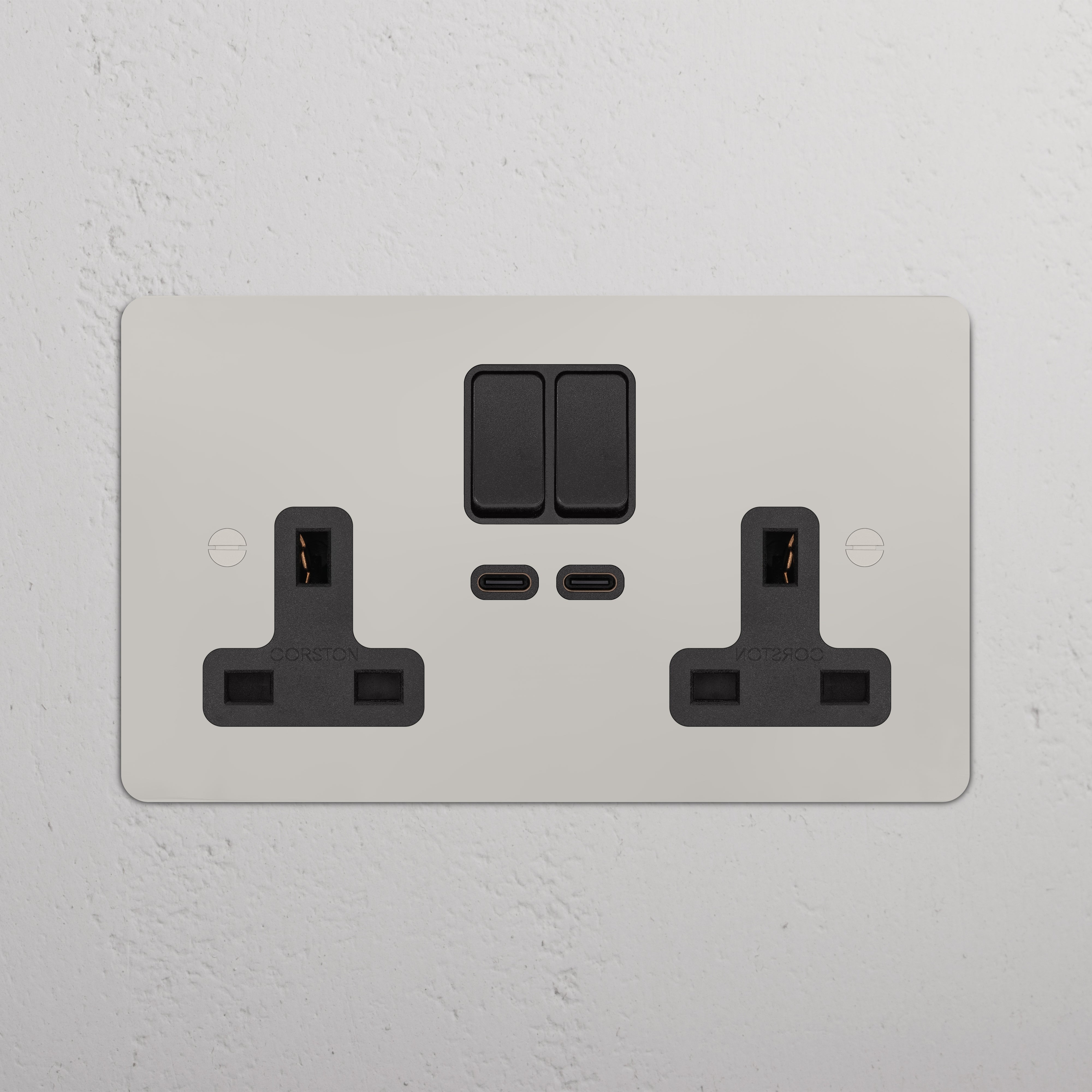 This double mixed socket combines a standard UK socket and two USB-C ports on one plate.
