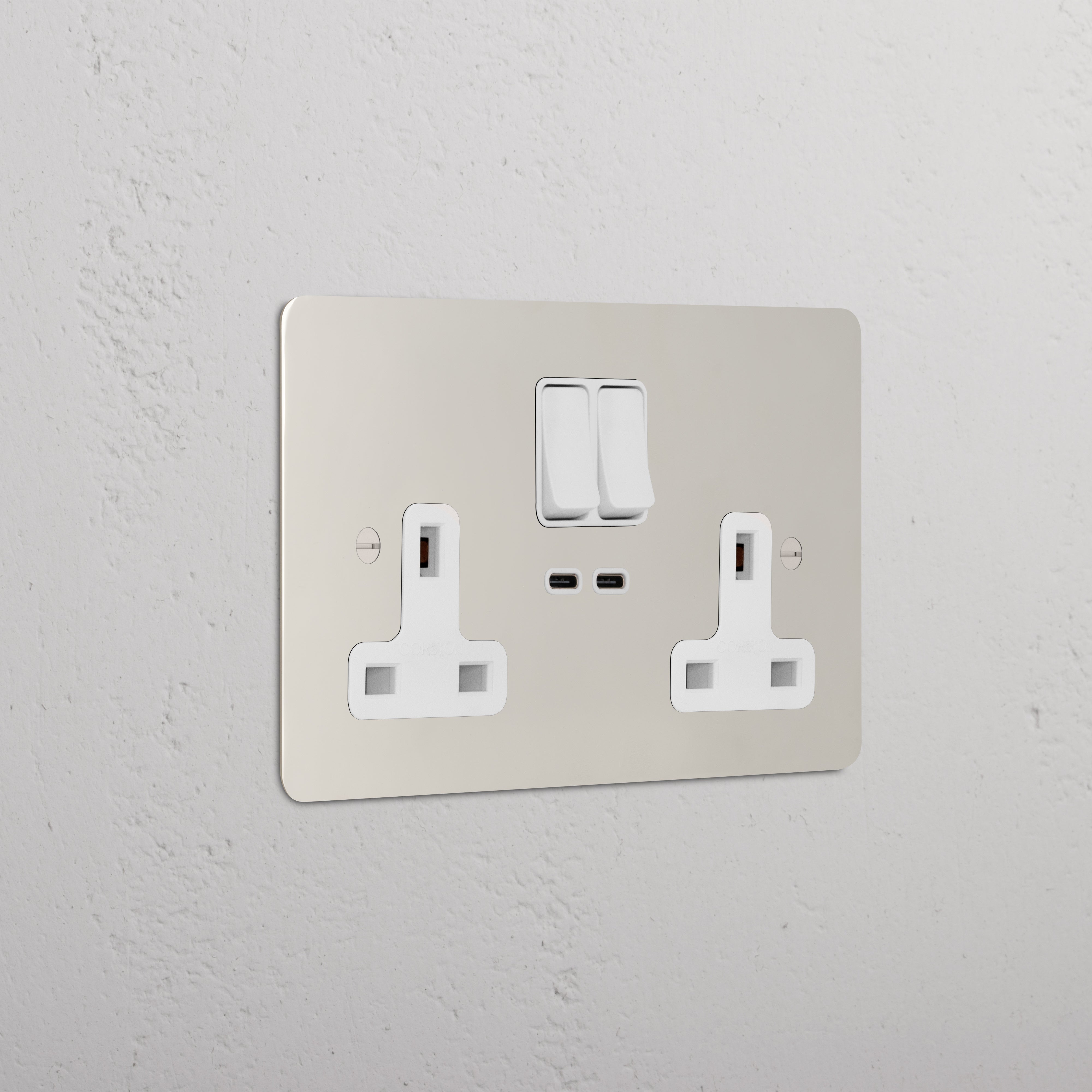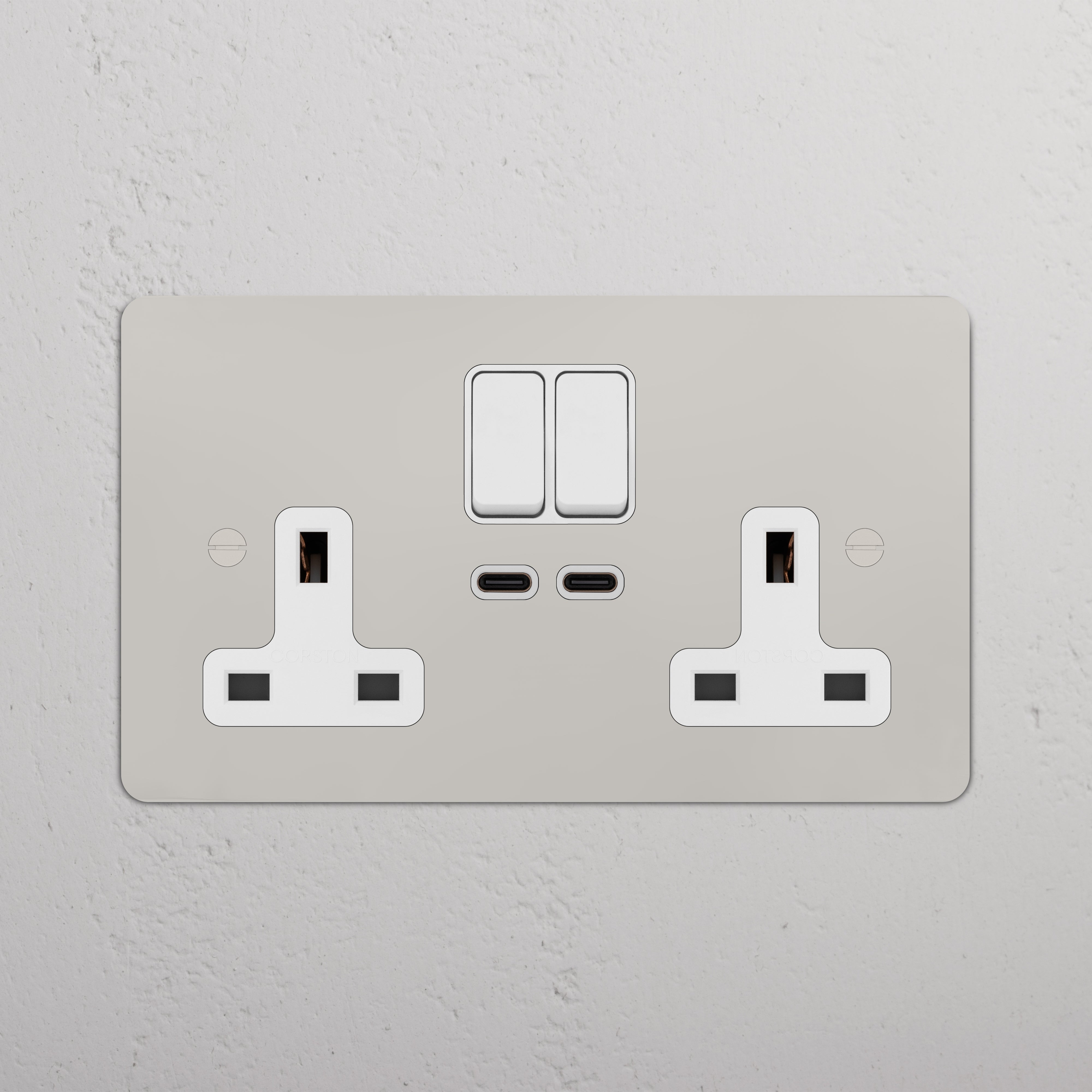 This double mixed socket combines a standard UK socket and two USB-C ports on one plate.