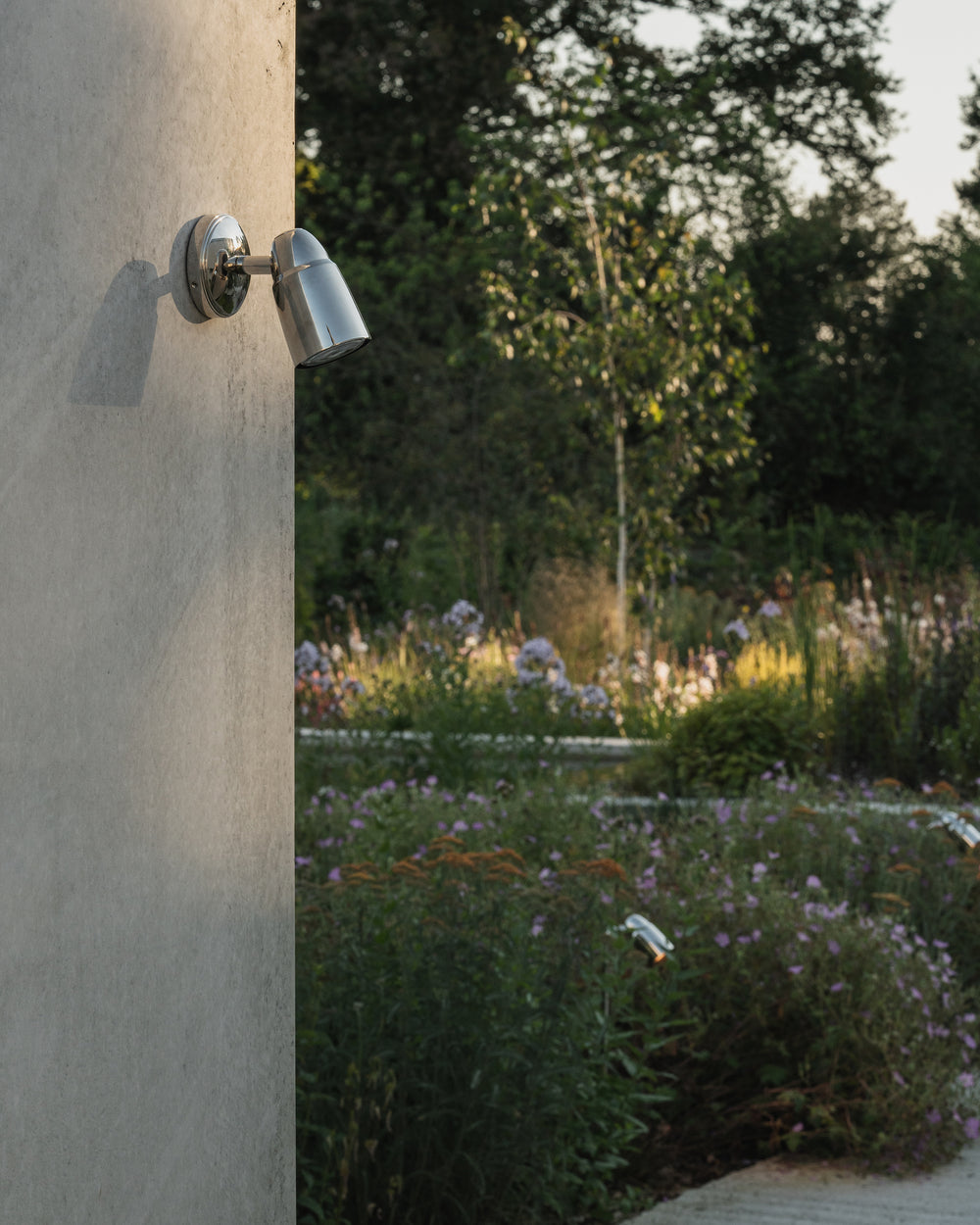 Our wall-mounted Ealing flush spotlight is designed to be directed downwards to illuminate garden paths, flowerbeds and the like.