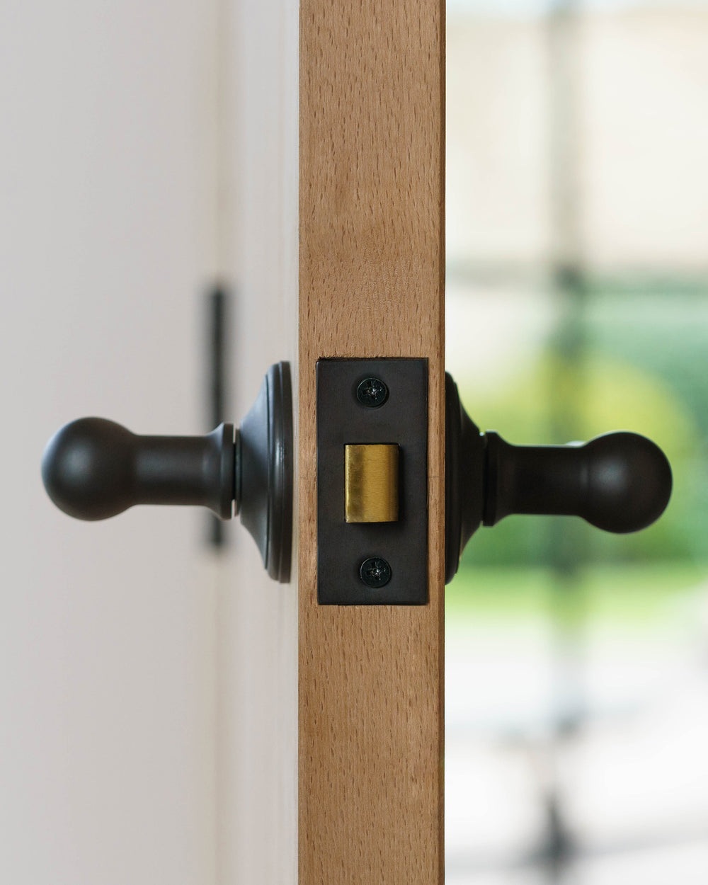 If you opt for our unsprung handles, a strong latch will work best with our lever handles to prevent drooping. You can use a lighter latch with our knobs to ensure they're easy to turn.