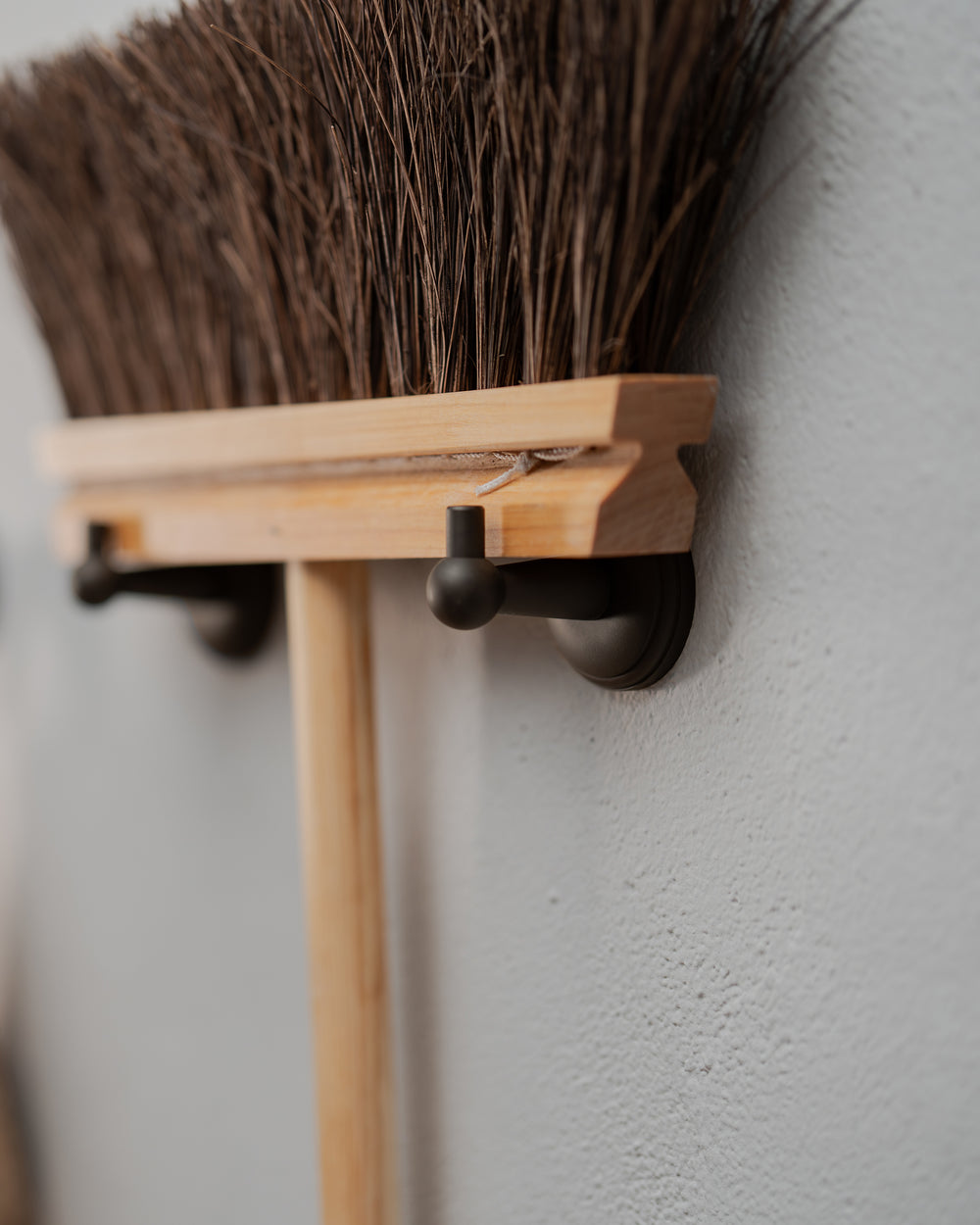 This simple hook design is small enough to be used inside of cupboards, and looks great when used in groups.