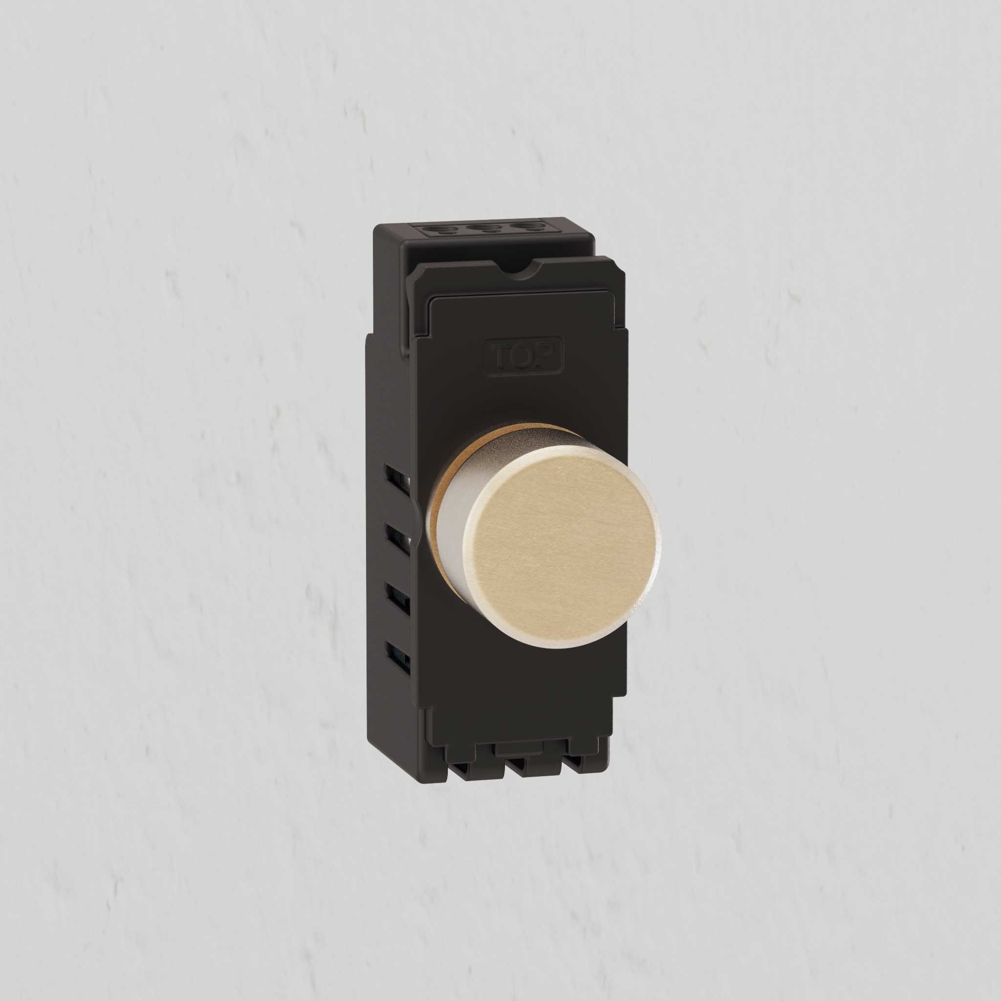 Our intermediate dummy dimmer can be combined with one dimmer and one dummy dimmer to control the same light from three or more locations. You can’t use it for dimming, but it’ll create a cohesive look with your other rotary dimmers.