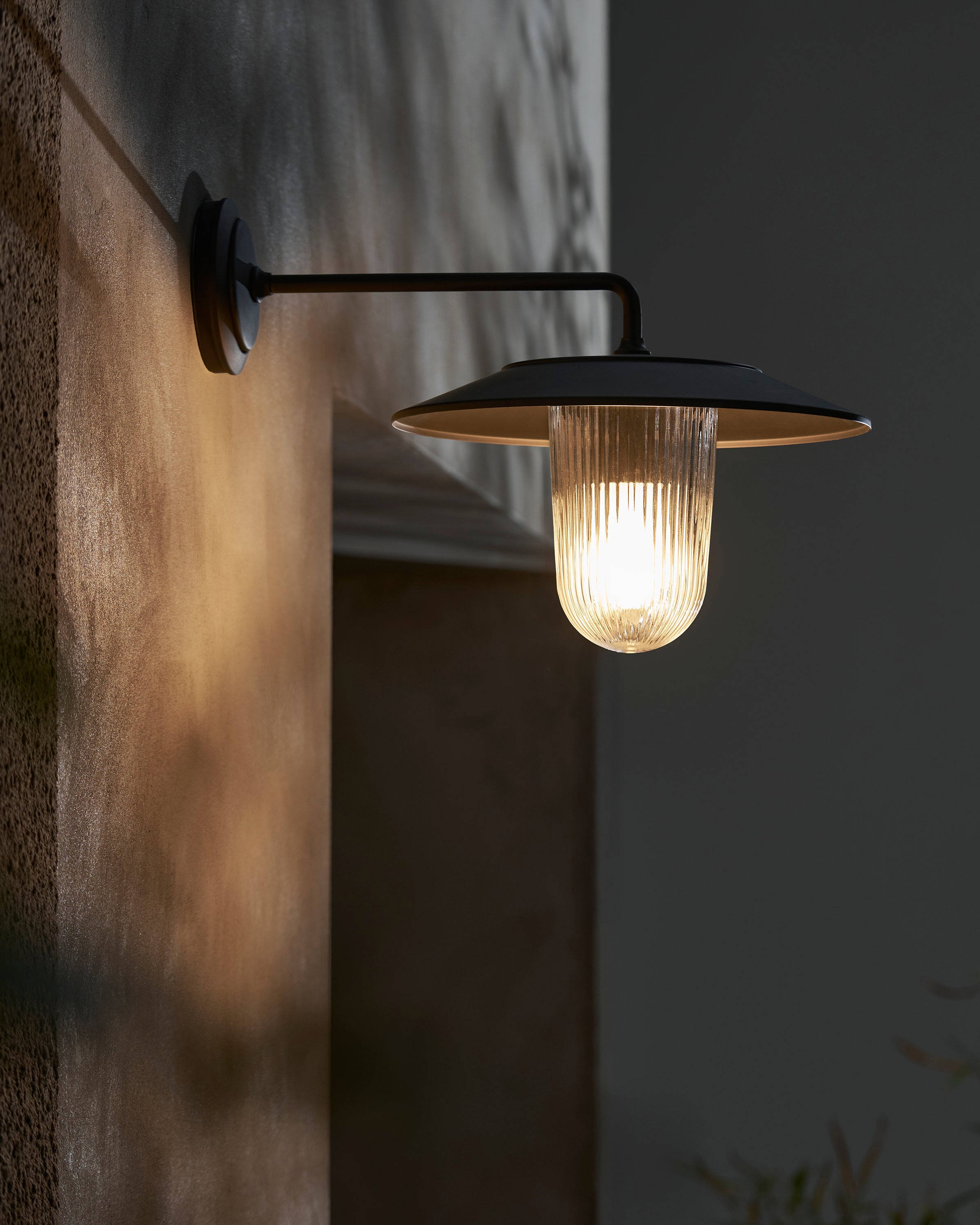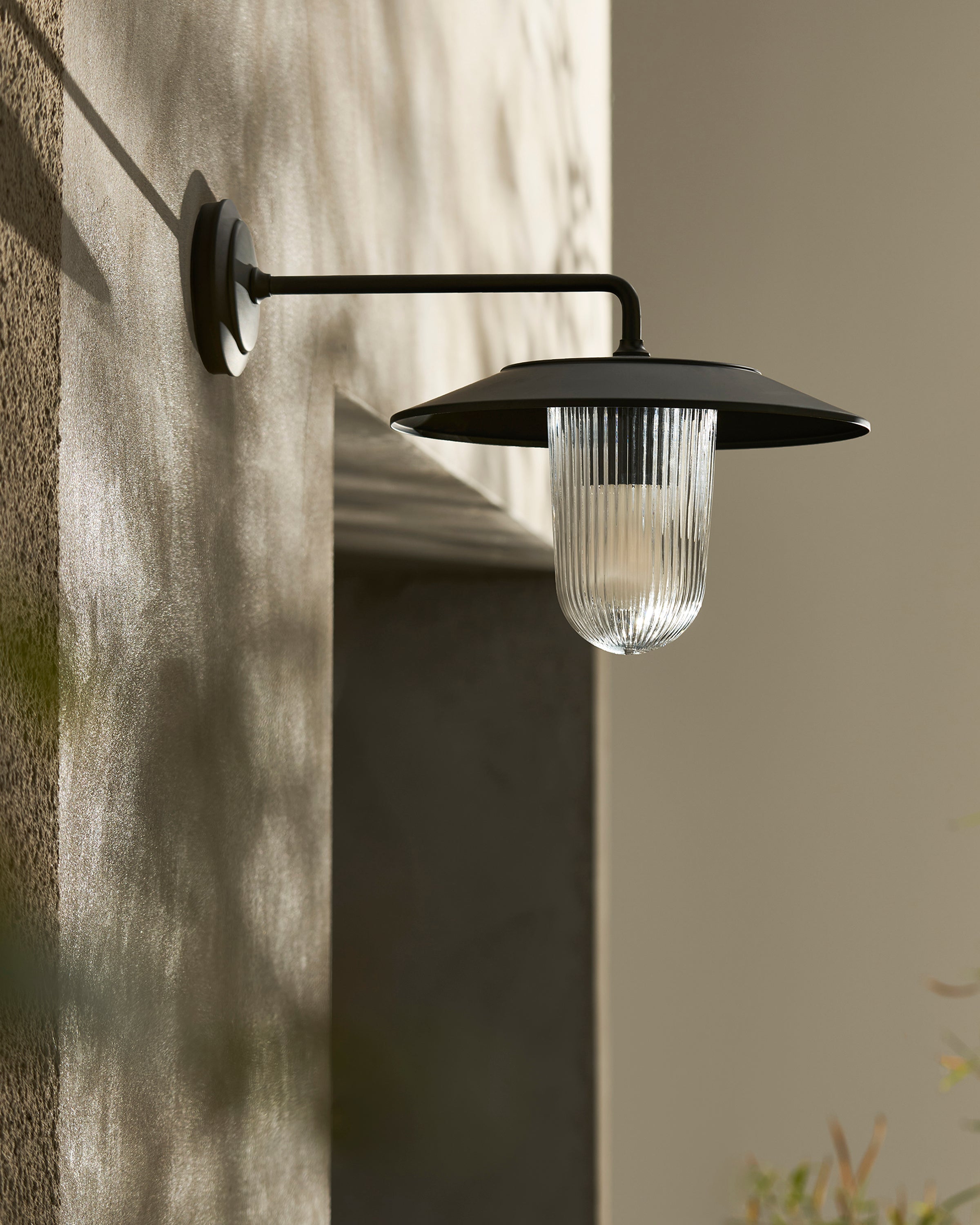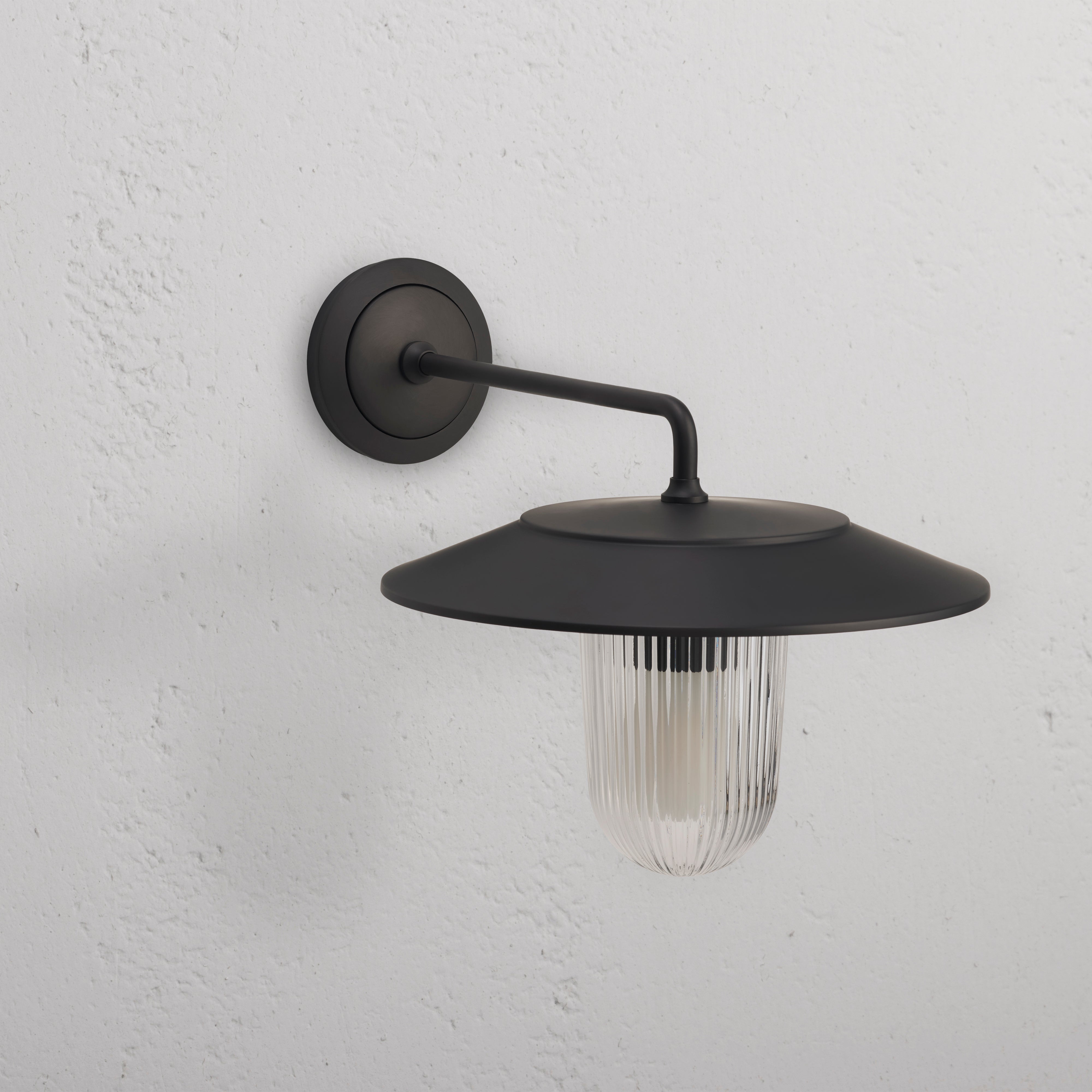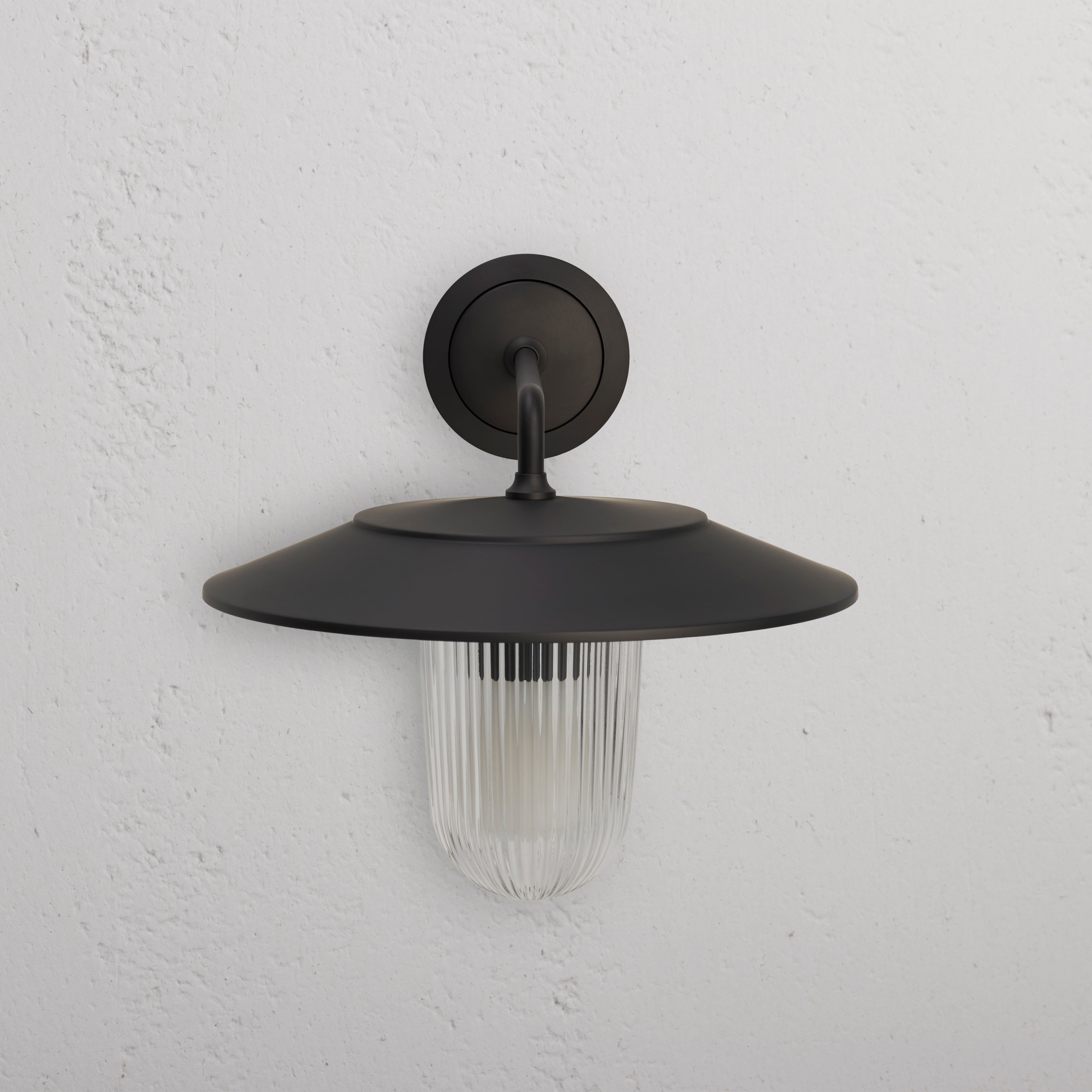 Our Kensington wall light has a large solid brass ‘cap’ to protect it from rain. The fluted glass cover provides 360-degree diffused lighting thanks to the vertical grooves.