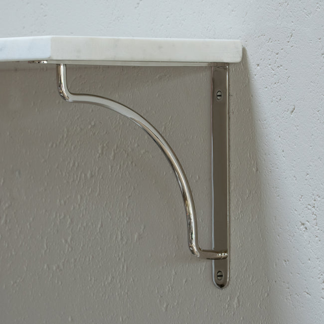 Our gently curved Kilburn shelf bracket is made from sturdy solid brass and will comfortably hold 40kg.