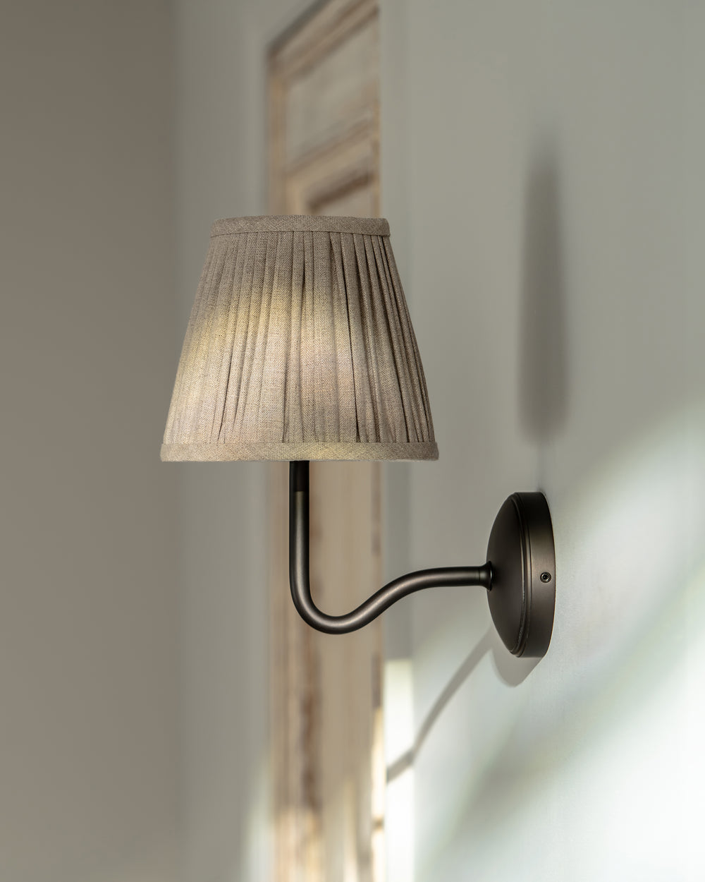Our medium-sized take on the traditional swan neck wall light is scaled up, but still perfectly proportioned. It’ll have a greater presence in bigger or high-ceilinged rooms.