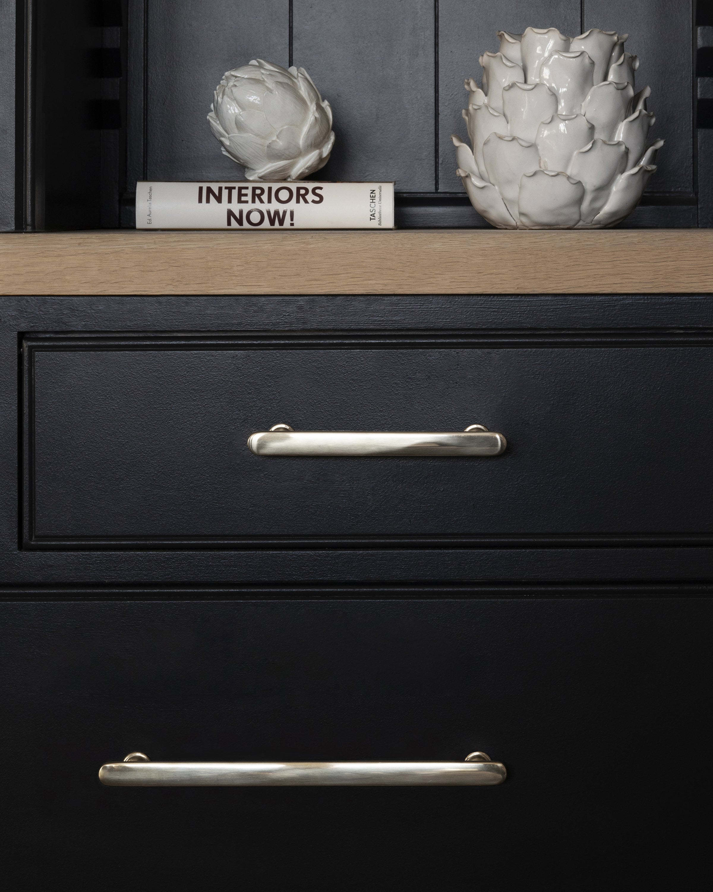 A modern take on the classic D-bar, the Milliner Furniture Handle is suited to any style of cabinetry. It matches perfectly with our Milliner Furniture Knobs. Polished nickel is our answer to chrome. It’s a bit warmer, which we think is more versatile, so you can use it with warm or cool colour palettes.
