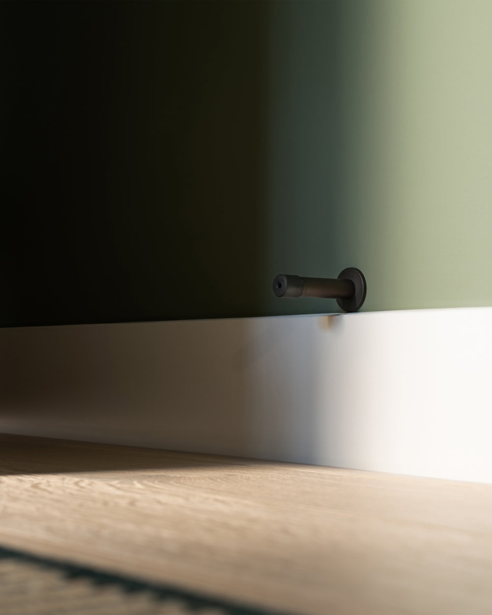 Fix the wall mounted Montpelier Door Stop to your skirting boards to protect your walls and doors.