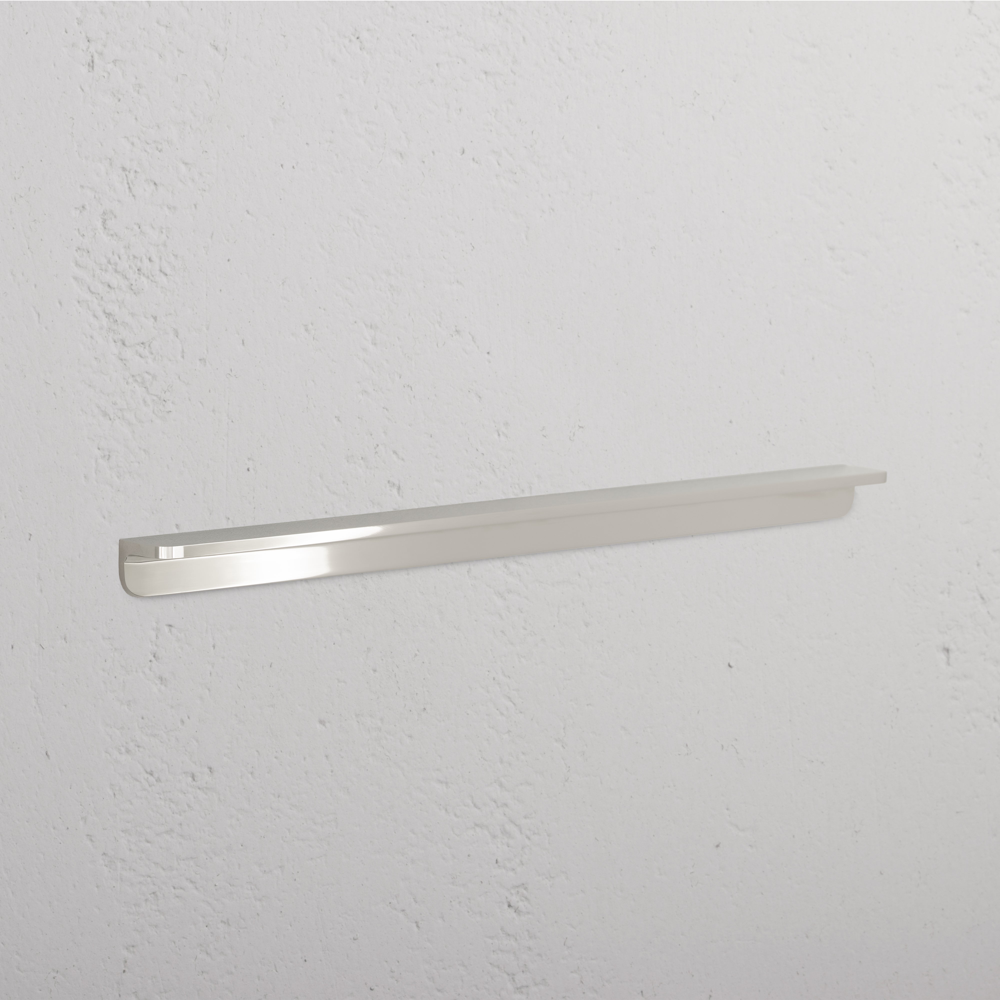 A modern, refined take on an edge pull handle with recessed grip detail for a firm hold.