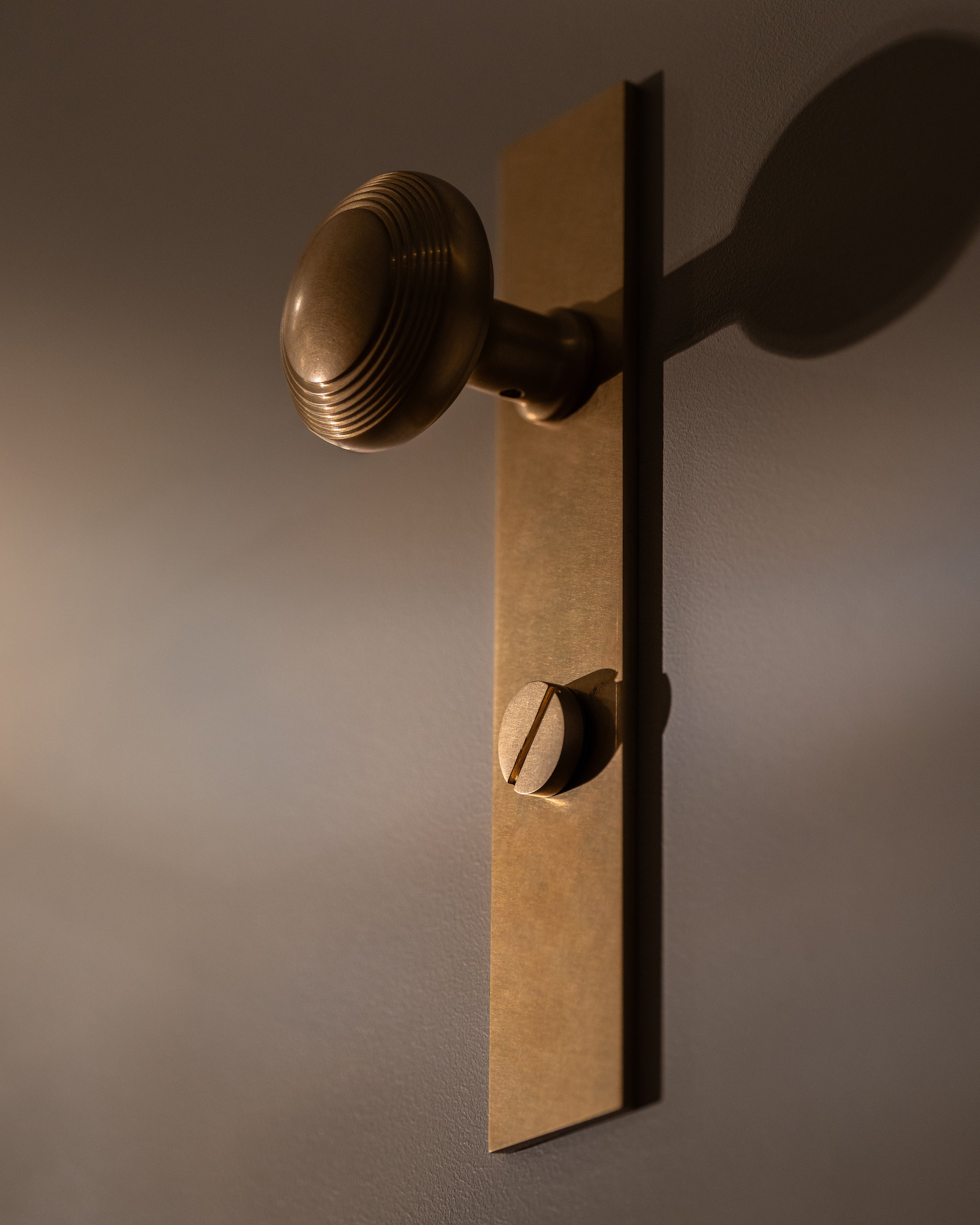 We’ve streamlined things, giving it a flatter knob and, in this case, a low-profile, long backplate and built-in thumbturn. It’ll work great in period homes with a contemporary edge, or new homes that want to bring in a traditional touch.