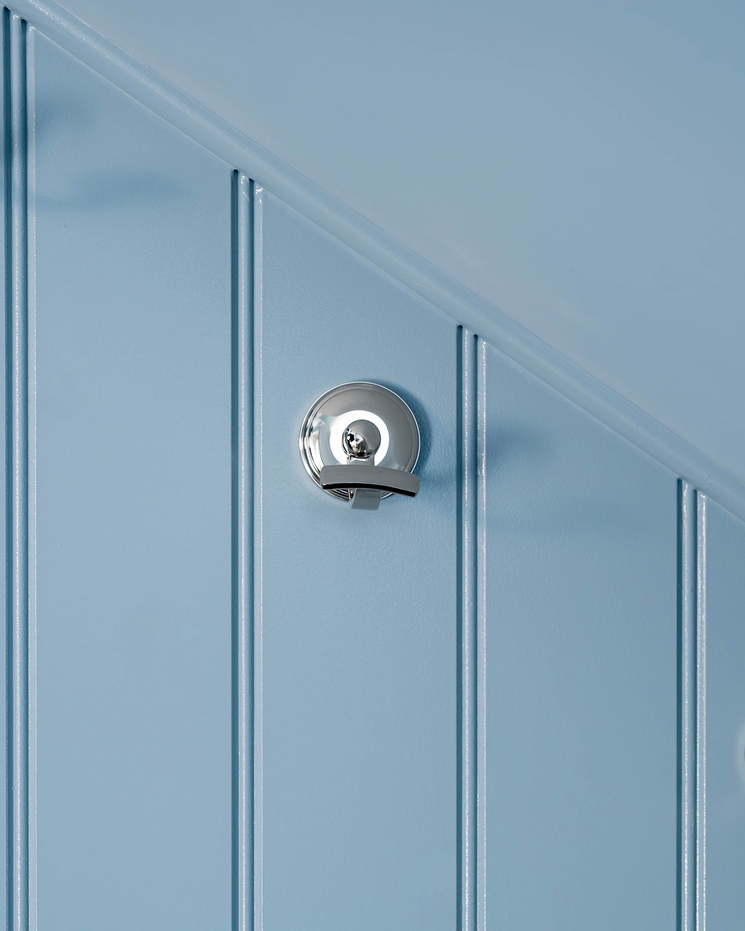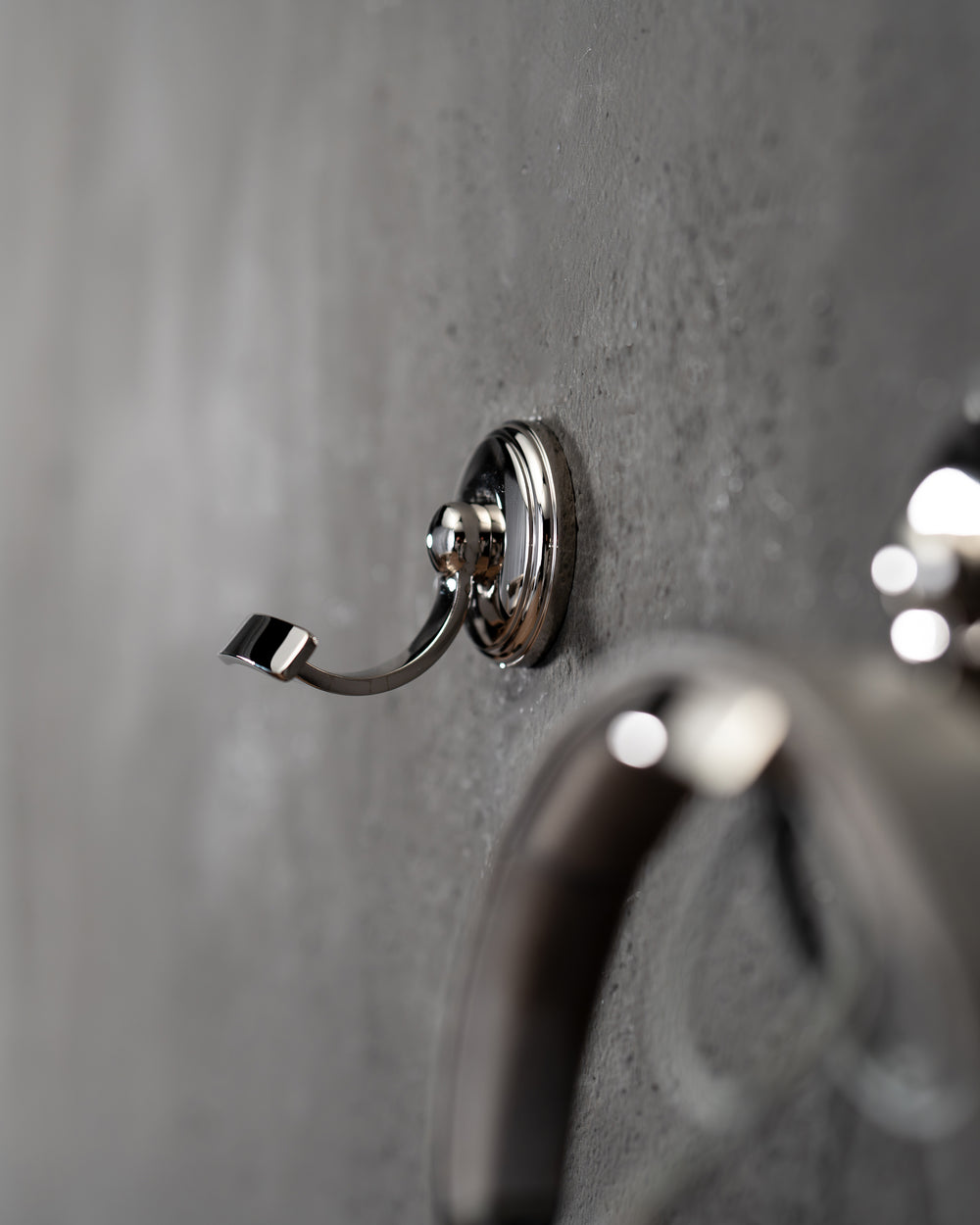 Polished nickel is our answer to chrome. It’s a bit warmer, which we think is more versatile, so you can use it with warm or cool colour palettes.