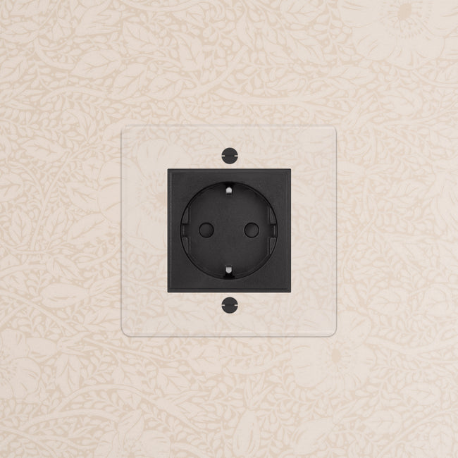 Our clear switches and sockets come with backing paper that you can either paint, or use as a wallpaper template. When you're happy with your chosen look, secure the clear front plate over the backing paper to conceal the wires.