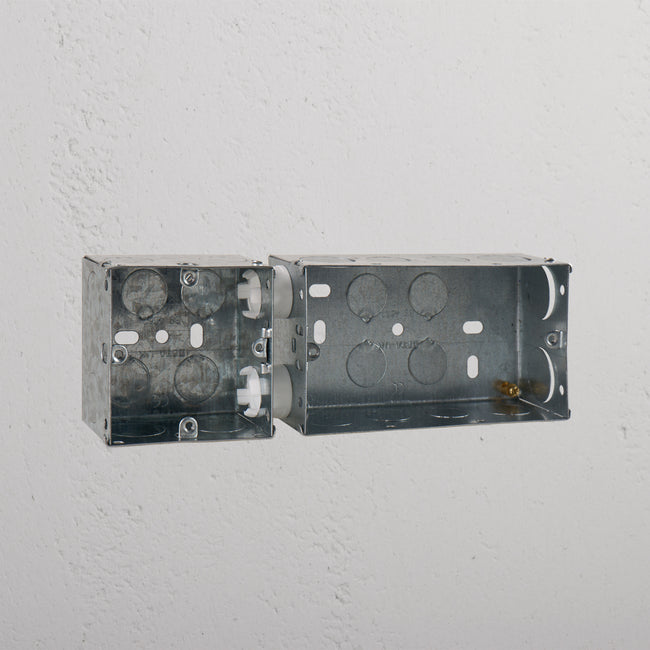 This single and double back box is made from galvanised metal. It’s for solid walls or where studs are exposed and it’s deep enough to hold all the electrics inside.